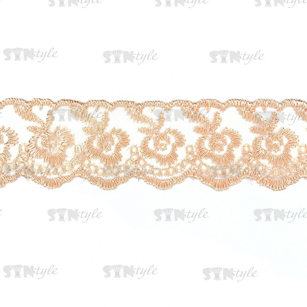 Кружево декоративное, ширина 40 мм, цвет персиковый (155), намотка 10 ярдов