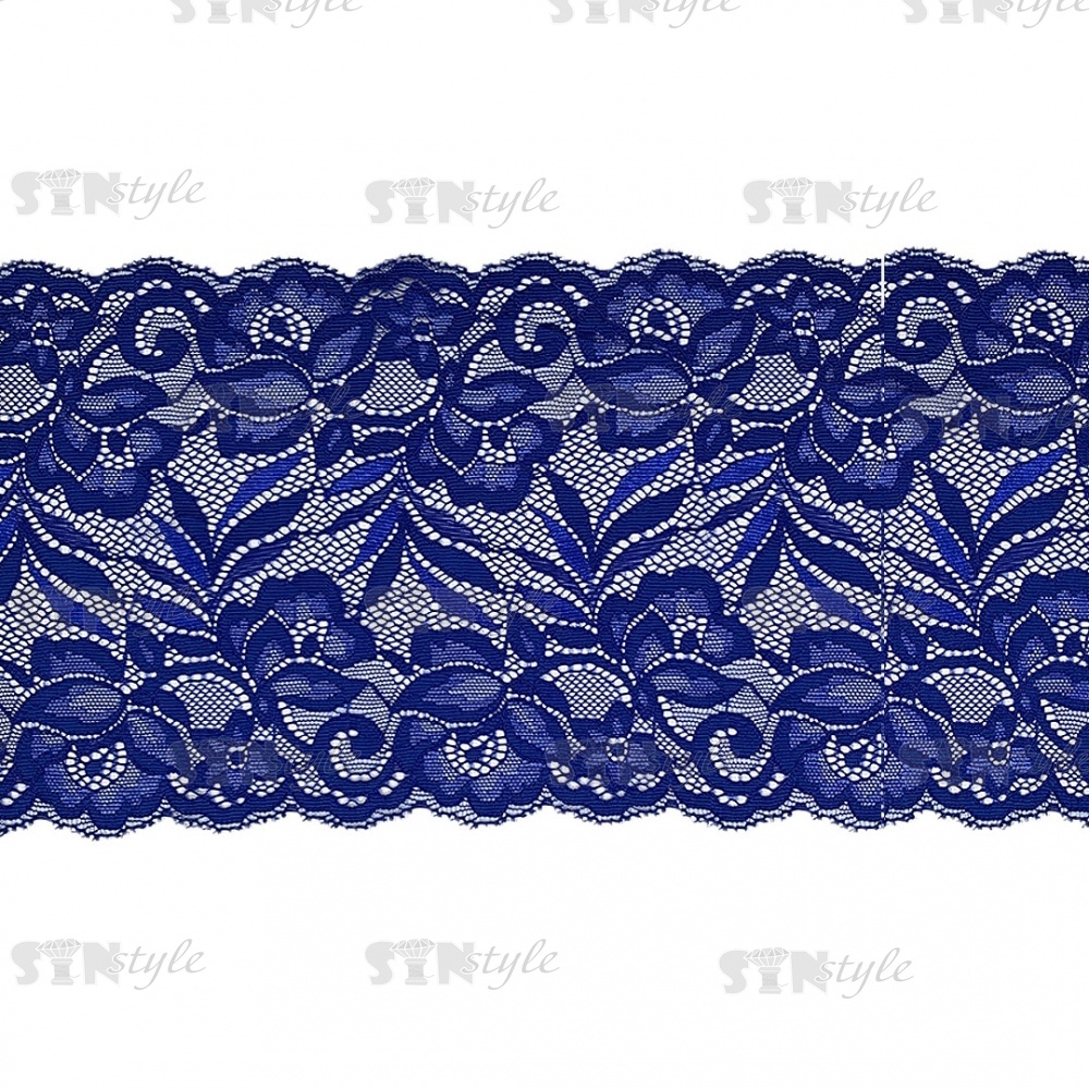 Кружево эластичное, ширина 150 мм, цвет ярко-синий, намотка 15 ярдов, материал лайкра