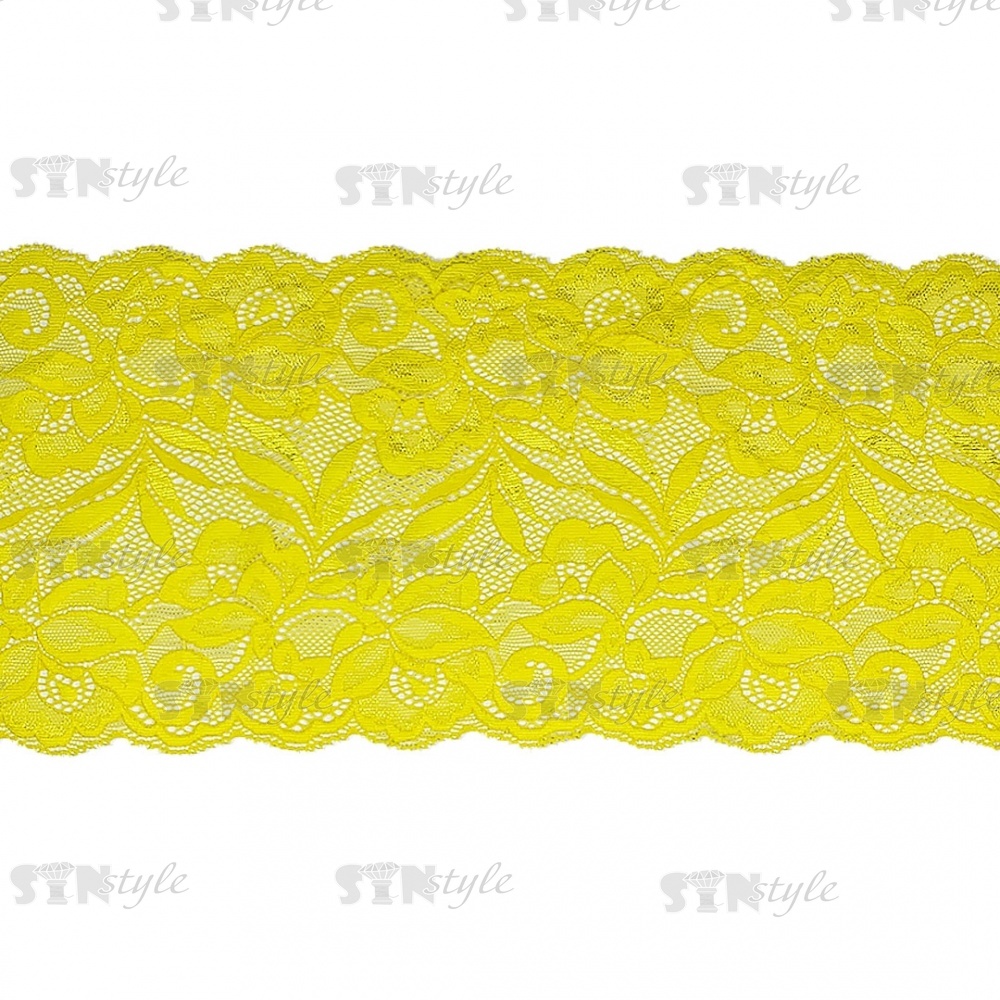 Кружево эластичное, ширина 150 мм, цвет лимонный, намотка 15 ярдов, материал лайкра