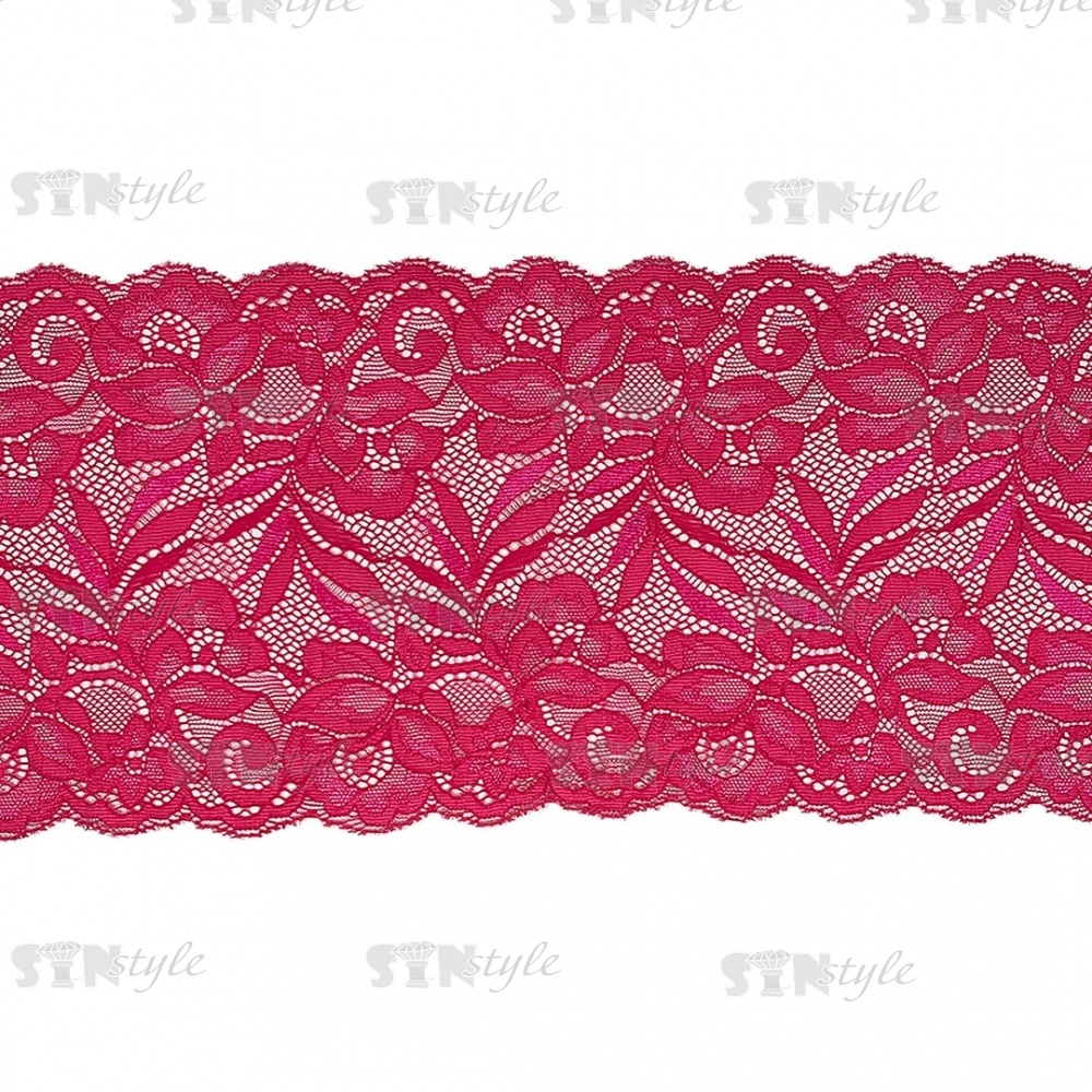 Кружево эластичное, ширина 150 мм, цвет фуксия, намотка 15 ярдов, материал лайкра