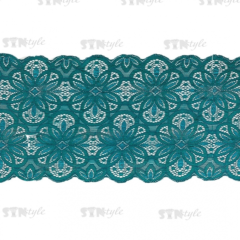 Кружево эластичное, ширина 180 мм, цвет бирюзовый, намотка 15 ярдов, материал лайкра