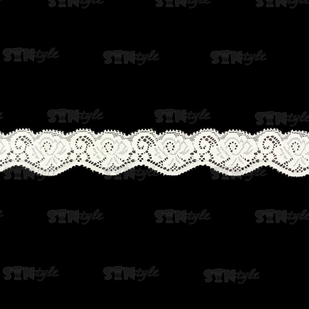 Кружево эластичное, ширина 35 мм, цвет белый, намотка 15 ярдов, материал лайкра