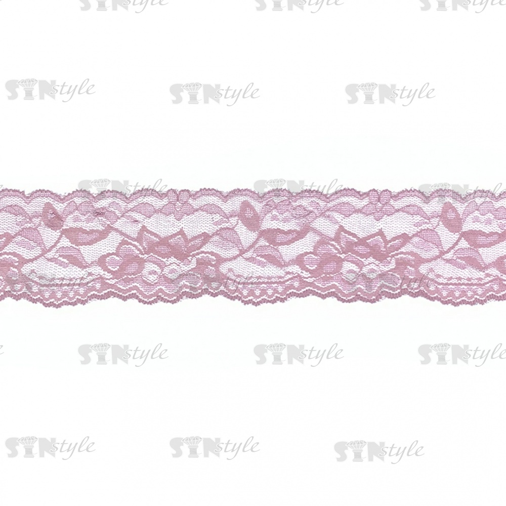 Кружево эластичное, ширина 55 мм, цвет грязно-розовый, намотка 15 ярдов, материал лайкра