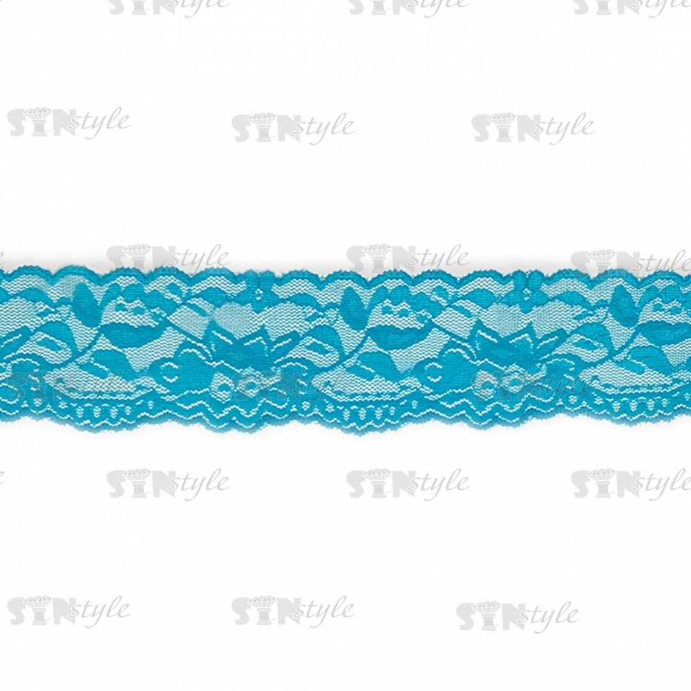 Кружево эластичное, ширина 55 мм, цвет бирюзовый, намотка 15 ярдов, материал лайкра