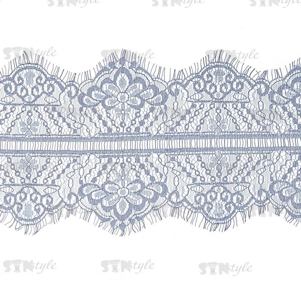 Кружево "Французское", ширина 140 мм, цвет серо-синий, длина 3 метра