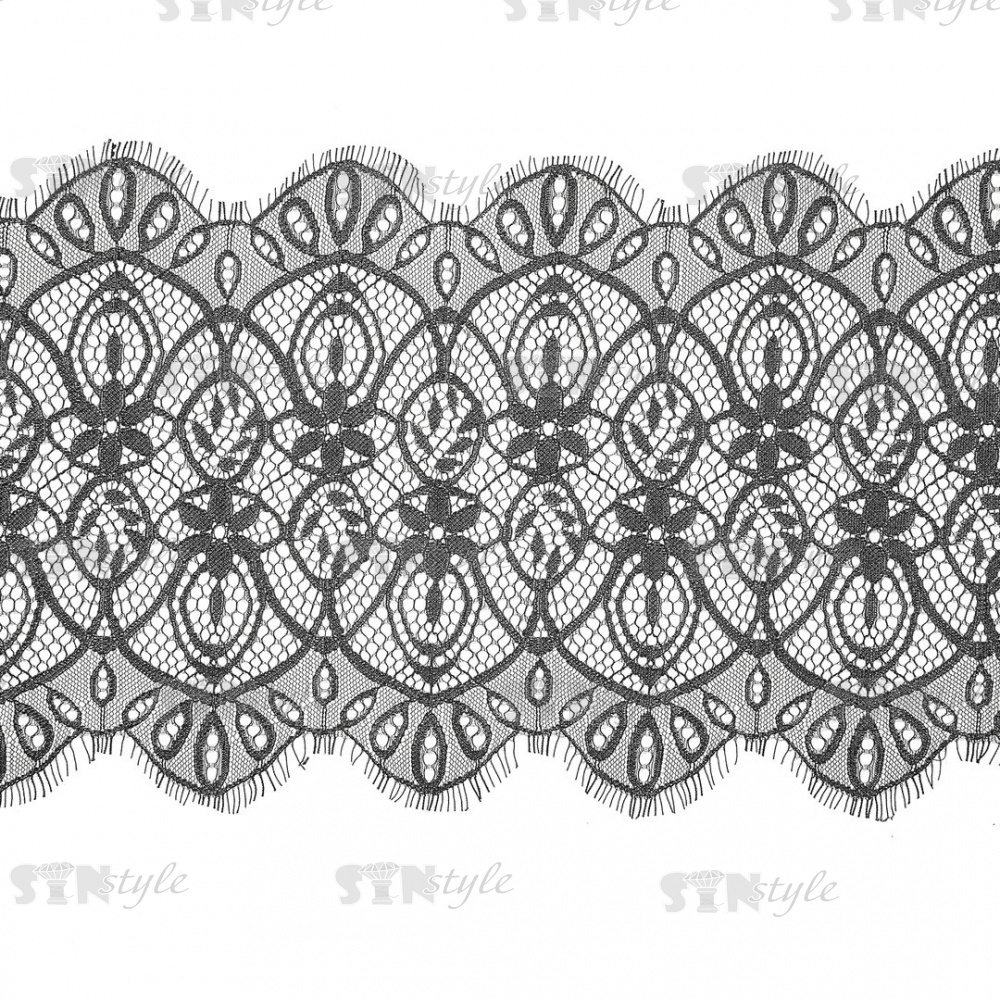 Кружево "Французское", ширина 220 мм, цвет черный, длина 3 метра