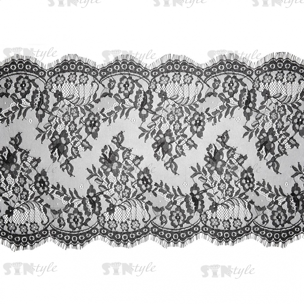 Кружево "Французское", ширина 380 мм, цвет черный, длина 3 метра