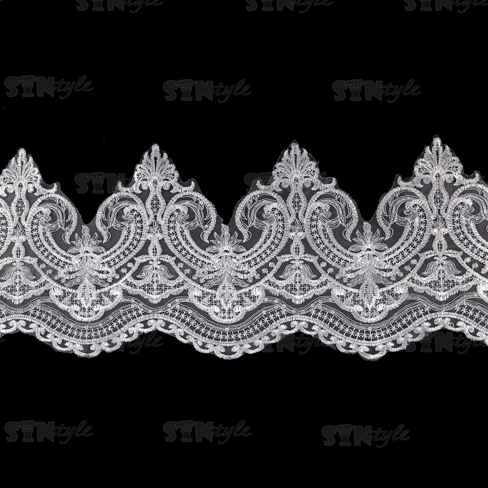 Кружево гипюр с пайетками, ширина 260 мм, цвет сияющий белый, намотка 10 ярдов