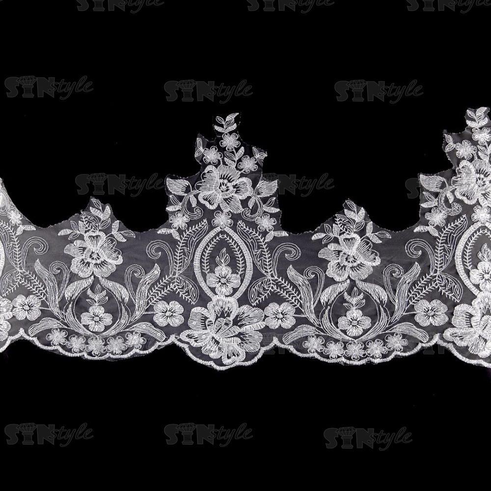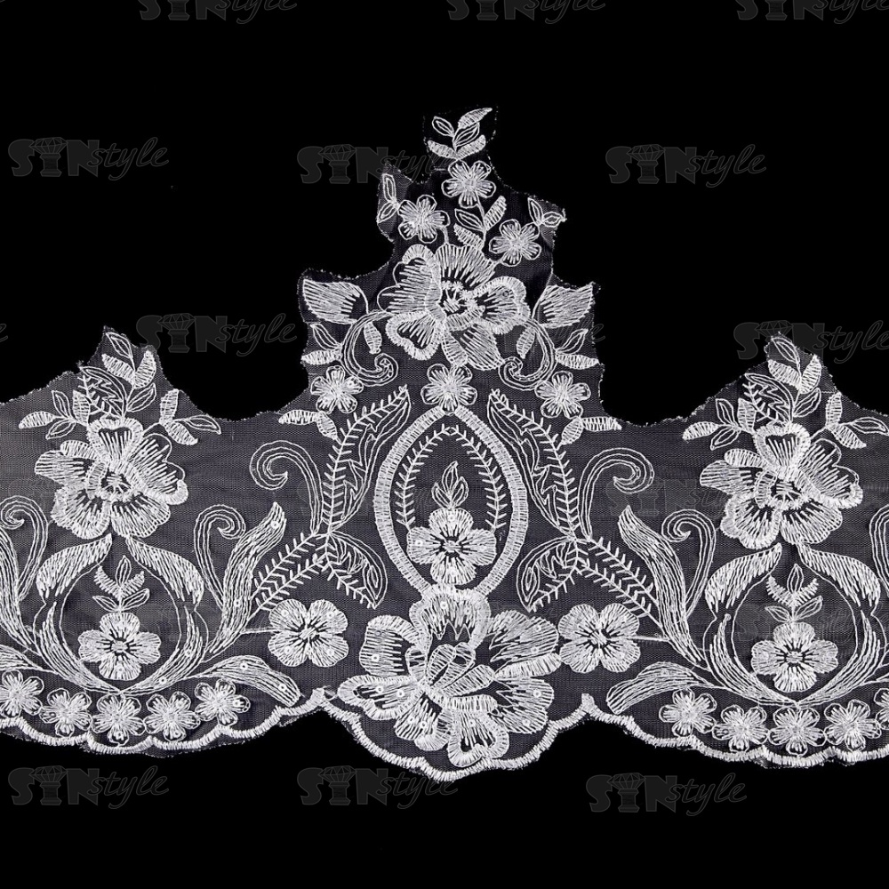Кружево гипюр с пайетками, ширина 300 мм, цвет сияющий белый, намотка 10 ярдов