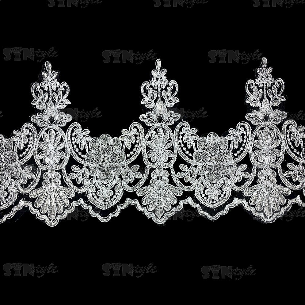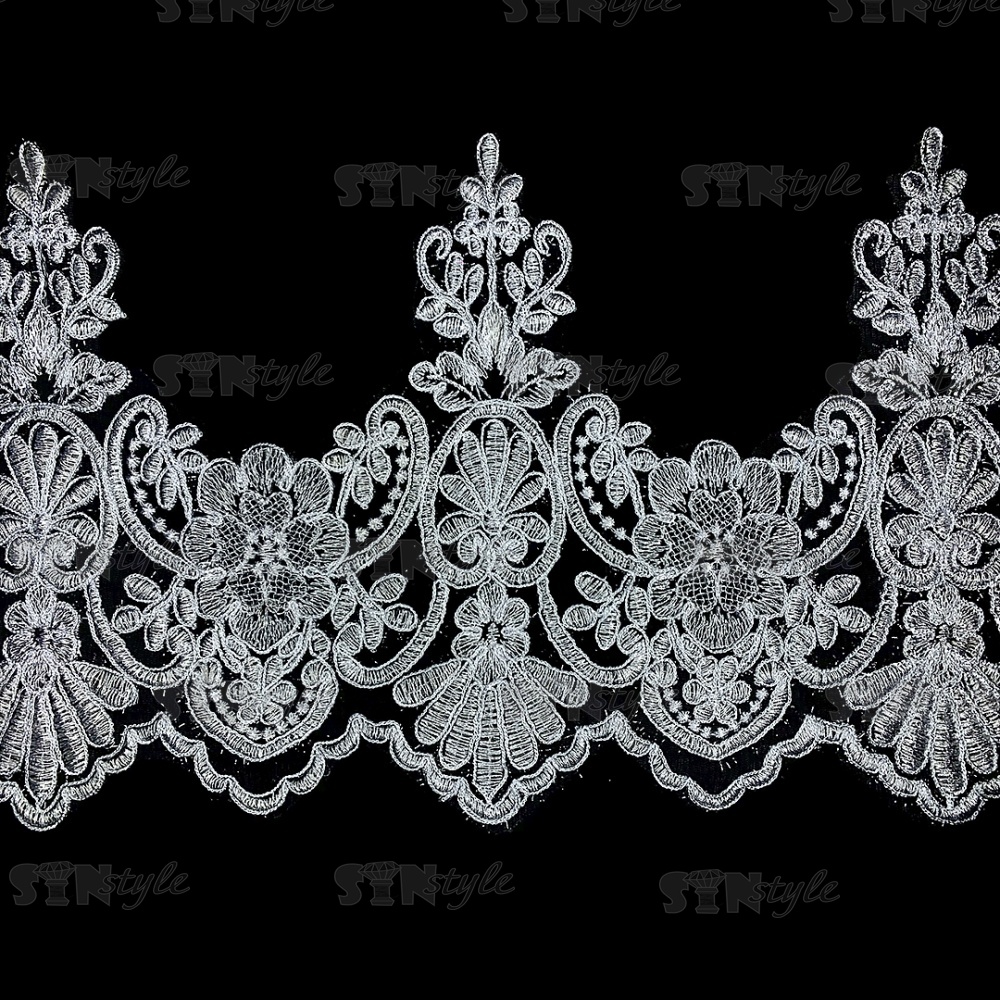 Кружево гипюр, тонкое изящное кружево с цветочным узором, ширина 235 мм, намотка 10 ярдов, цвет сияющий белый