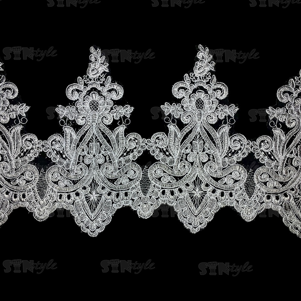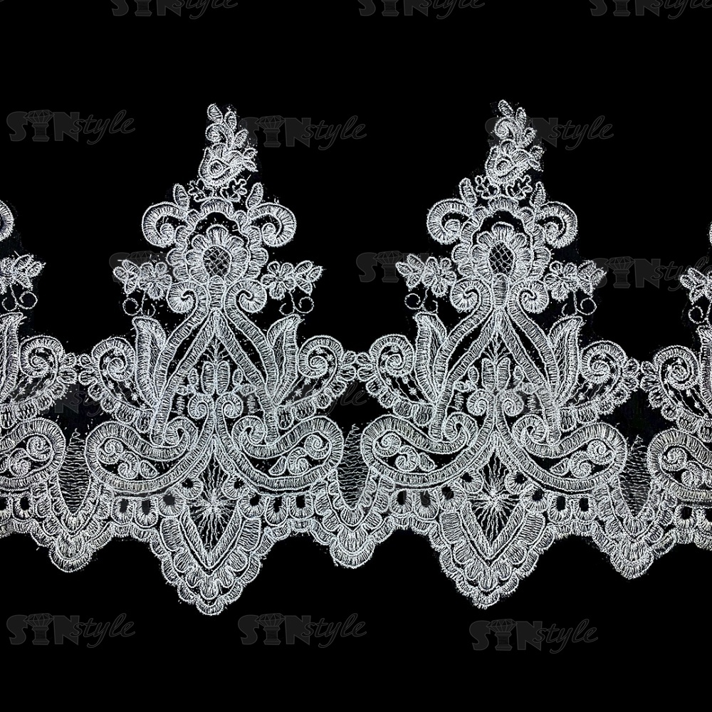 Кружево гипюр, тонкое изящное кружево с цветочным узором, ширина 280 мм, намотка 10 ярдов, цвет сияющий белый