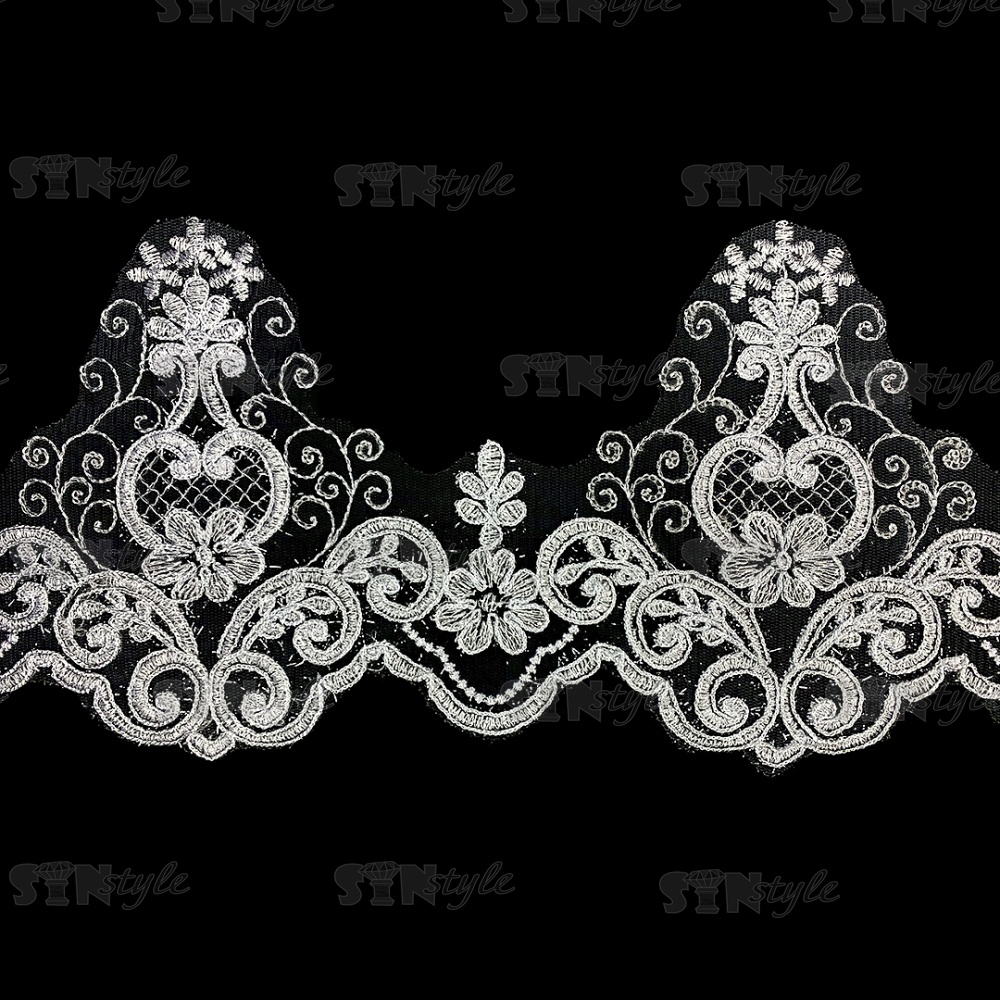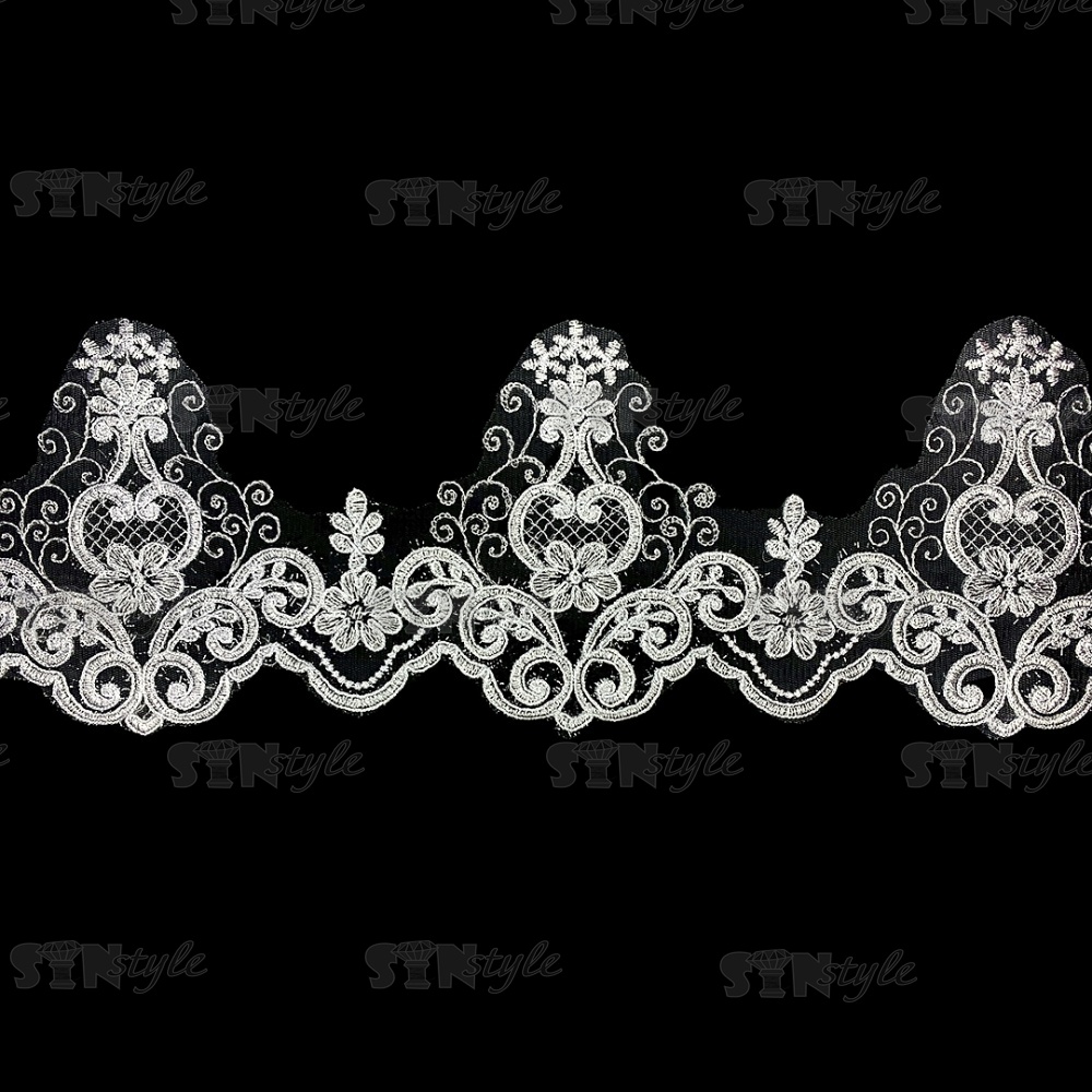 Кружево гипюр, тонкое изящное кружево с цветочным узором, ширина 145 мм, намотка 10 ярдов, цвет кипенно-белый