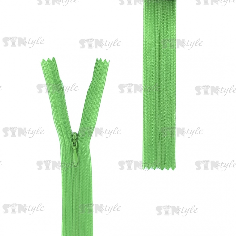 Молния спираль, тип 3, потайная, неразъемная, основа капрон, длина 50 см, цвет 052 (яркий салатовый), бегунок цвета основы