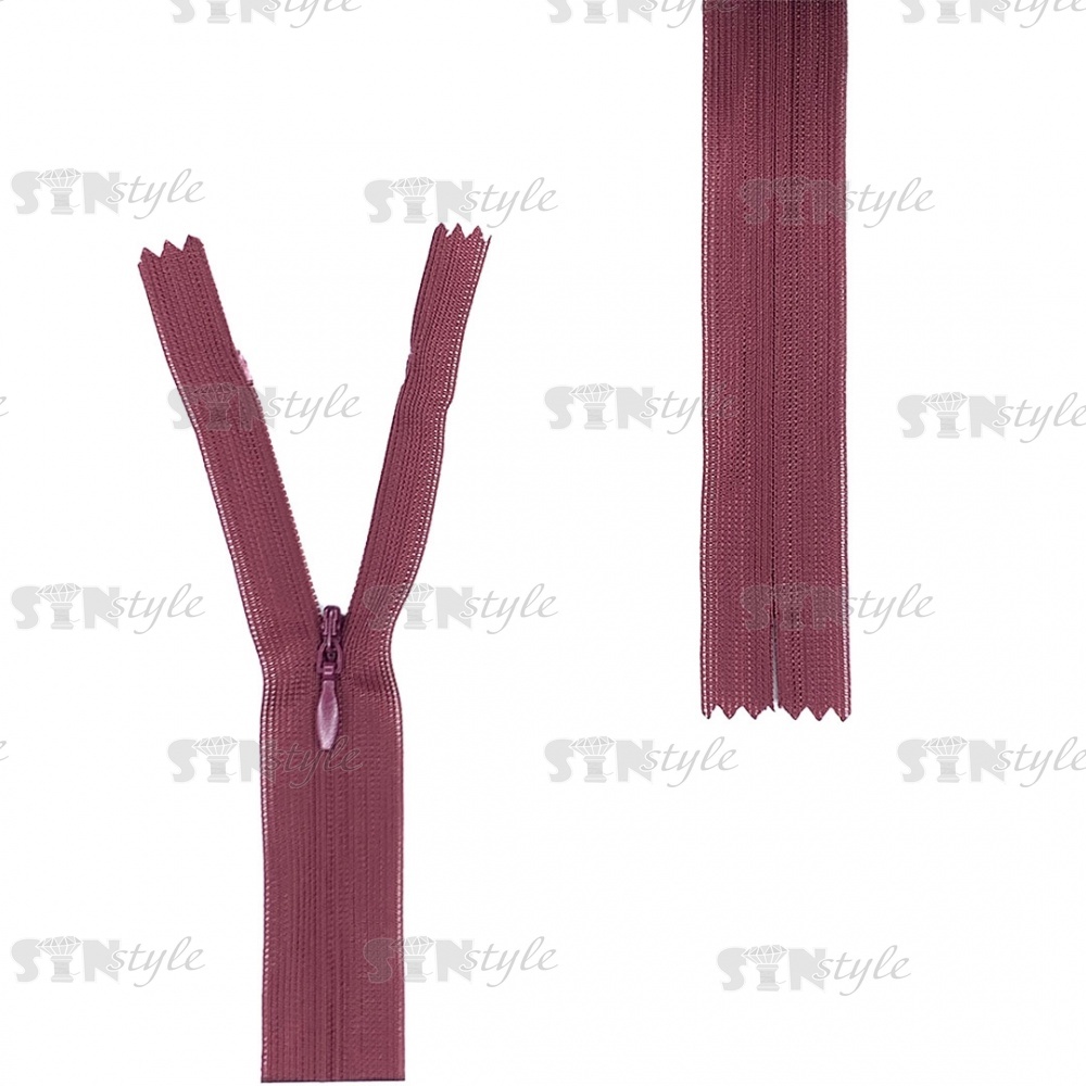 Молния спираль, тип 3, потайная, неразъемная, основа капрон, длина 50 см, цвет 527 (бордовый), бегунок цвета основы