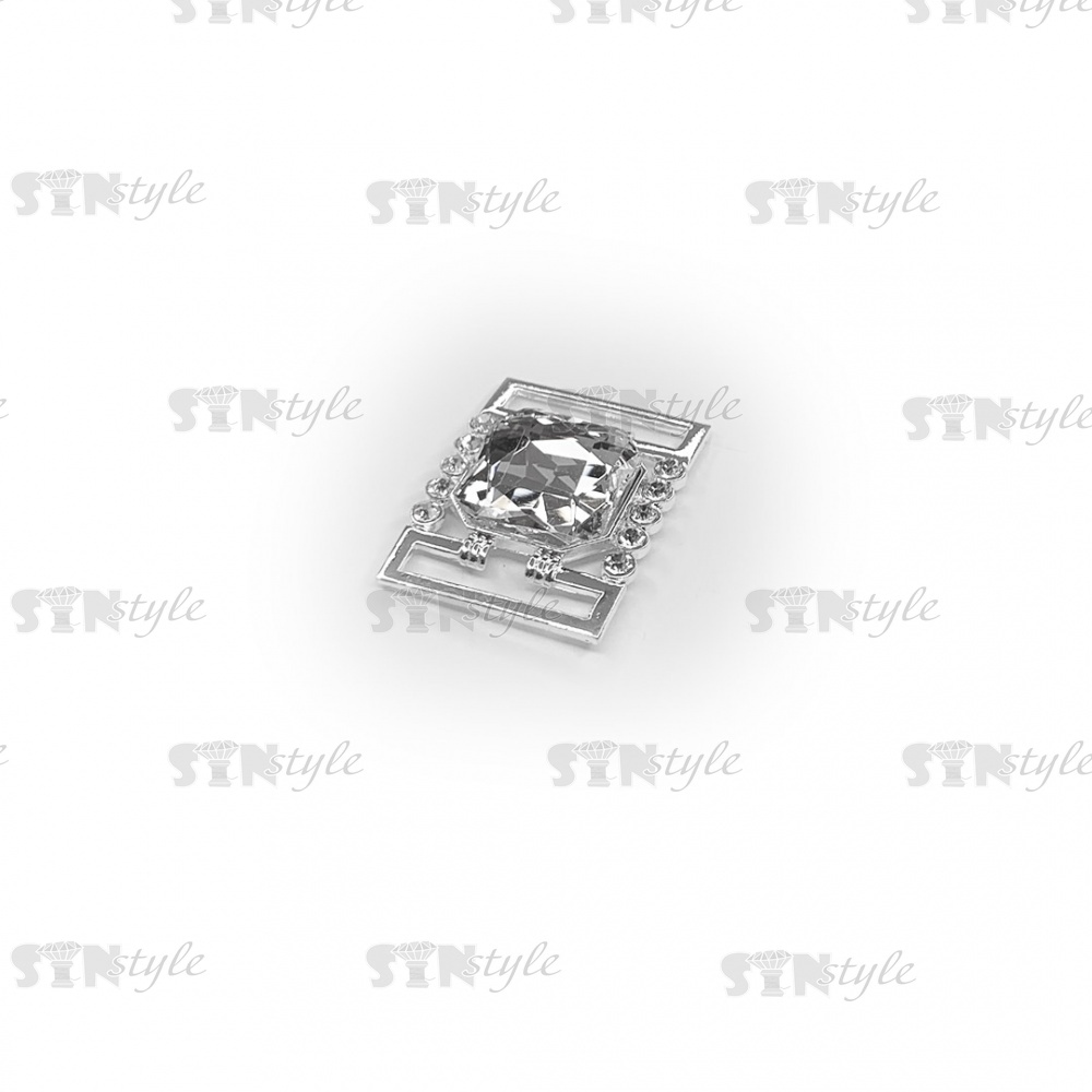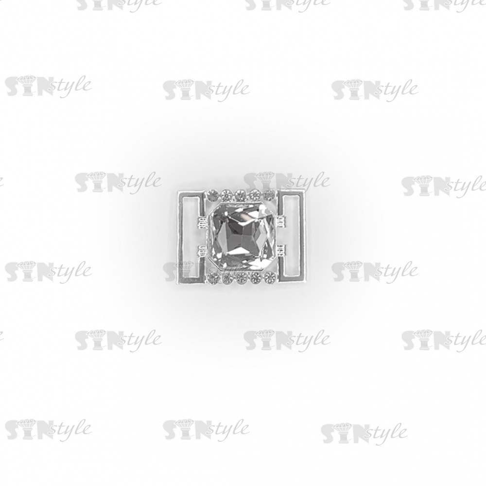 Пряжка металлическая, цвет серебряный+белые стразы, внутренний размер 27 мм