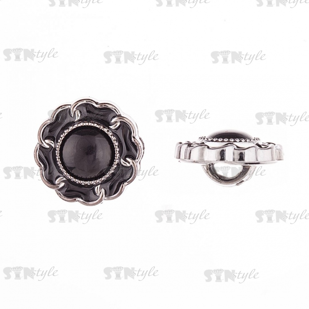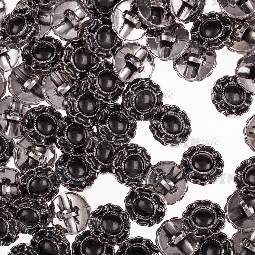 Пуговица пластиковая на ножке, размер 28L, цвет никель+черный
