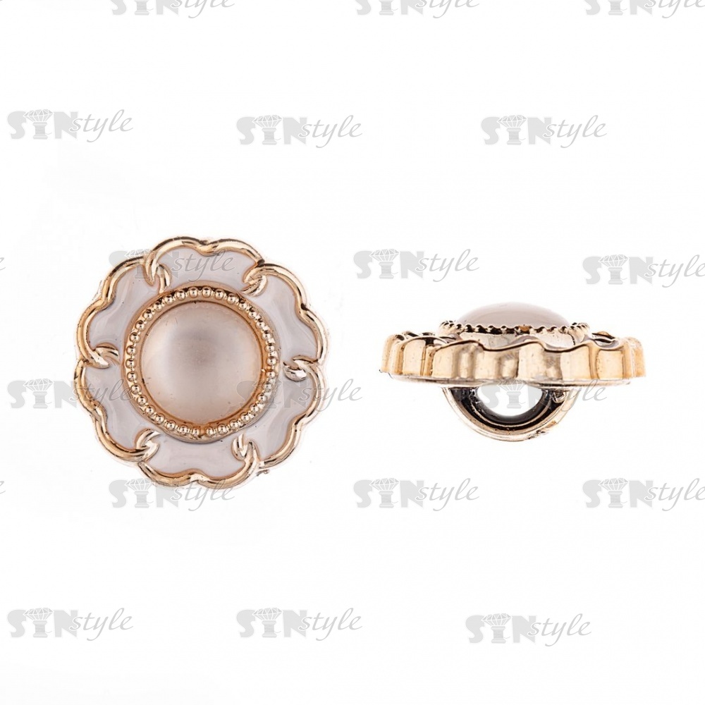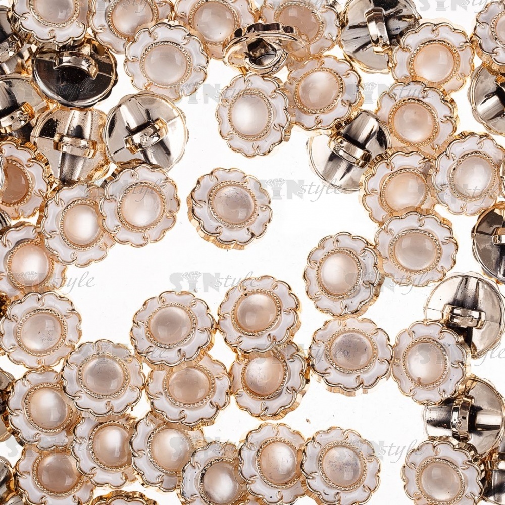 Пуговица пластиковая на ножке, размер 28L, цвет золотой+белый