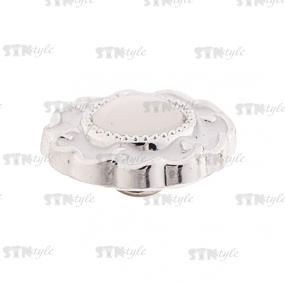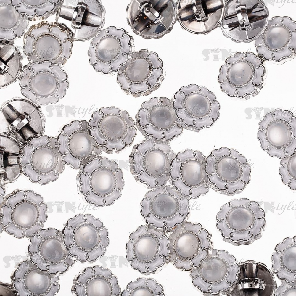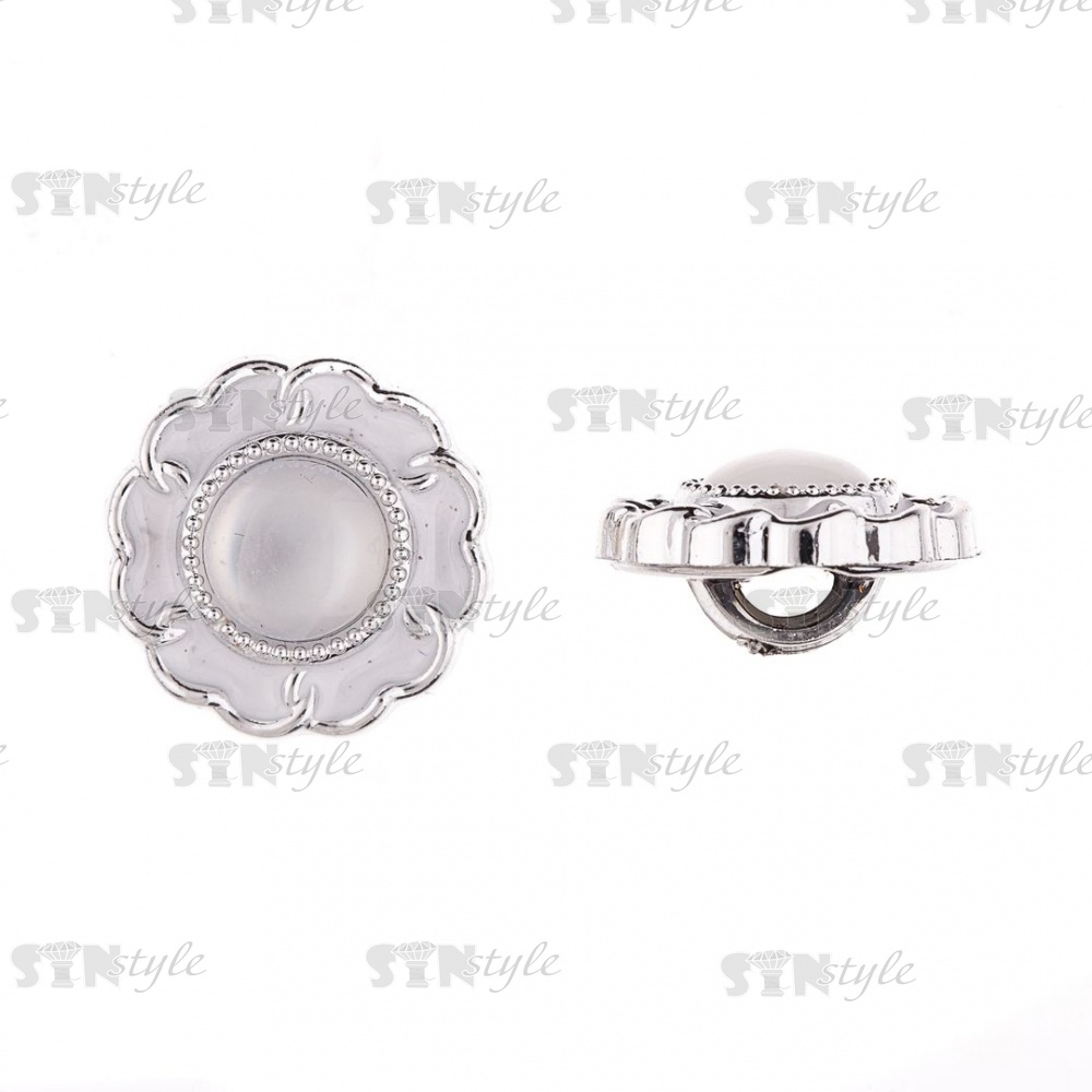 Пуговица пластиковая на ножке, размер 34L, цвет никель+белый