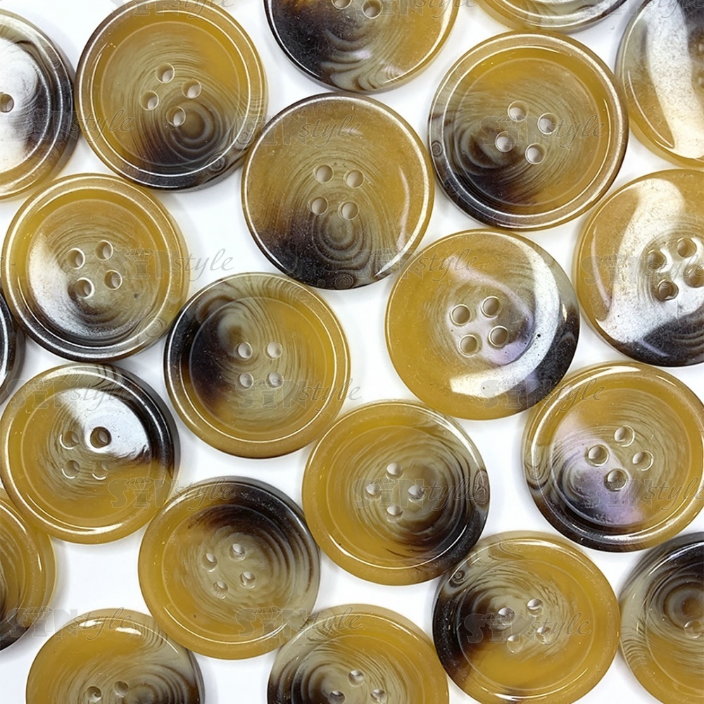 Пуговица пластиковая на четыре прокола, размер 32L, цвет желто-коричневый