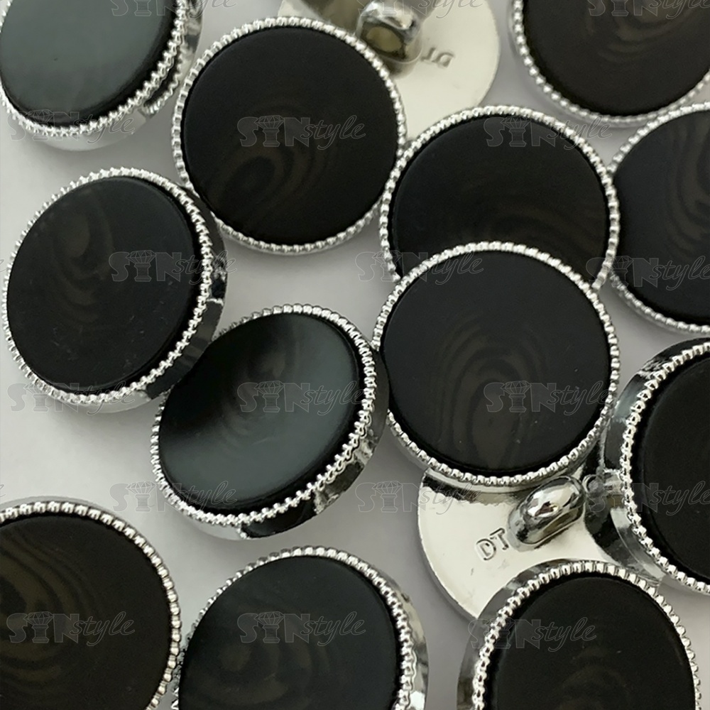 Пуговица пластиковая на ножке, размер 40L, цвет серебряный+черный