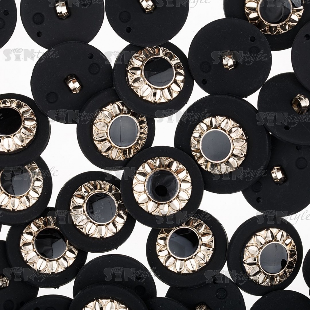 Пуговица пластиковая на ножке, размер 40L, цвет черный/золотой