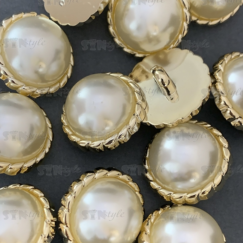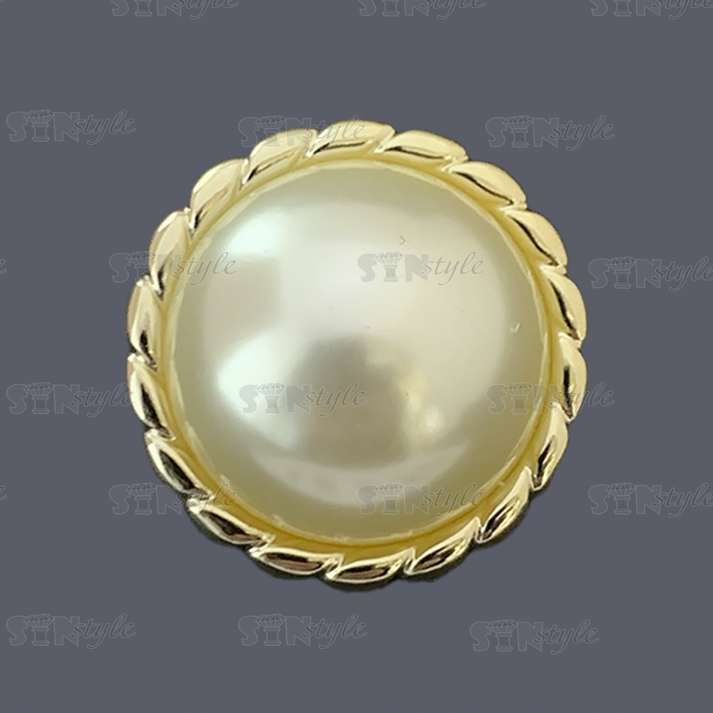 Пуговица пластиковая на ножке, размер 40L, цвет золотой+белый