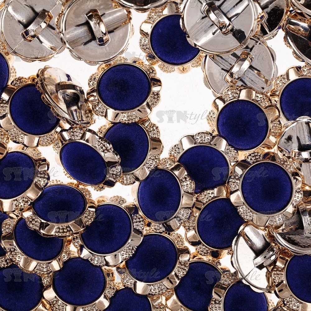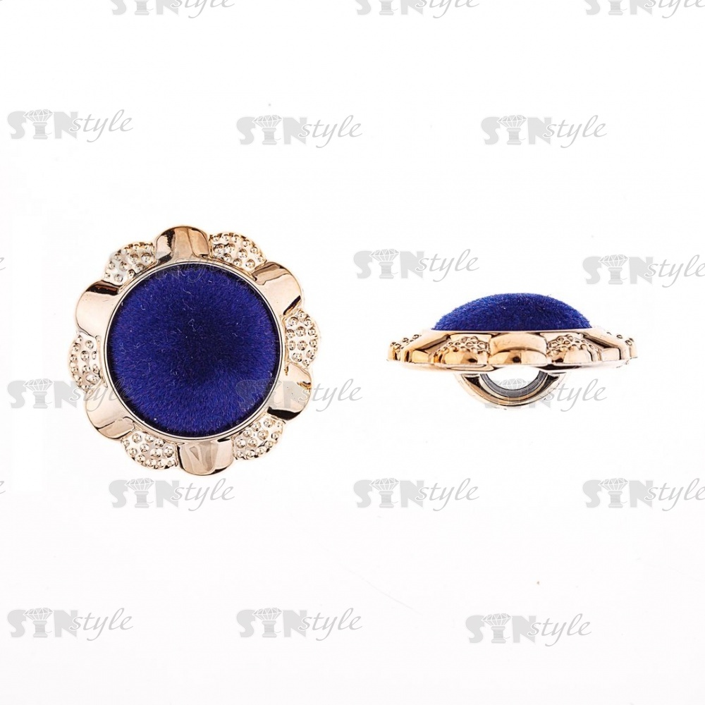 Пуговица пластиковая на ножке с бархатной шляпкой, размер 40L, цвет золотой+темно-синий
