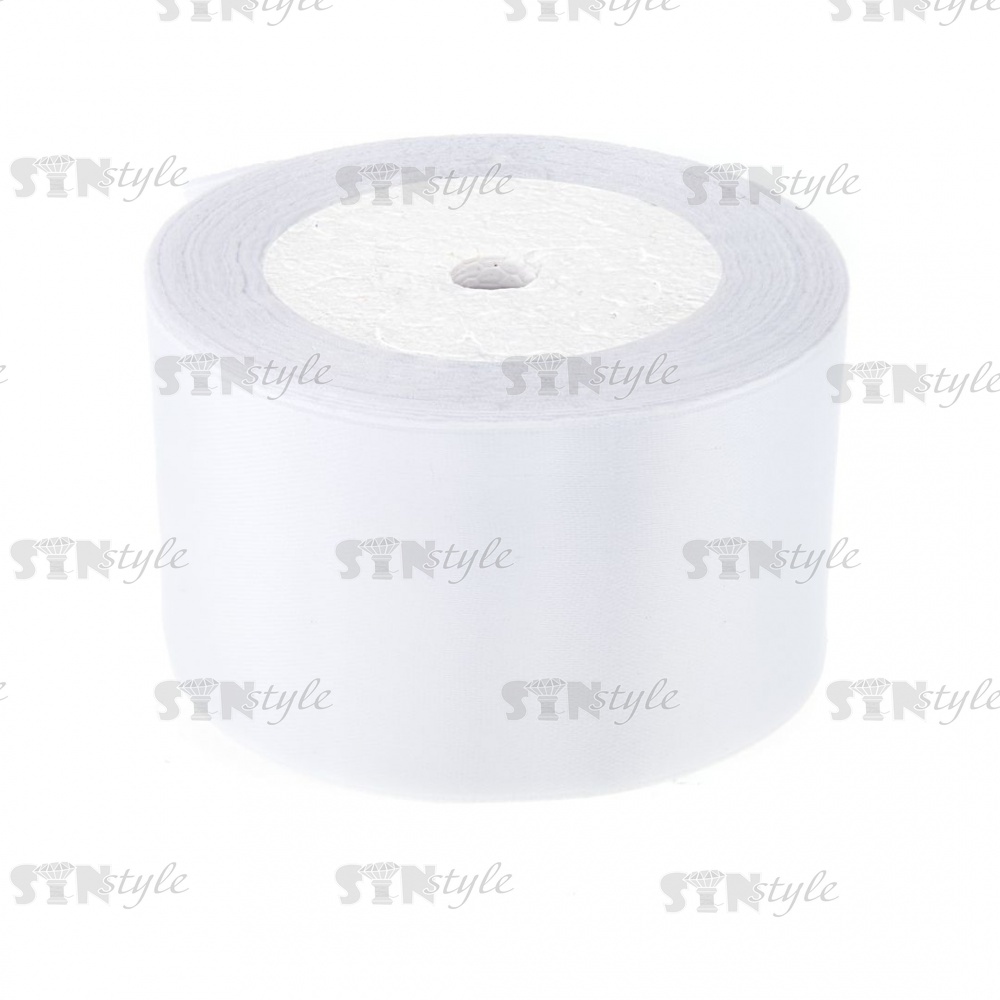Декоративная лента атласная, ширина 50 мм, длина 25 ярдов, цвет белый (№001)