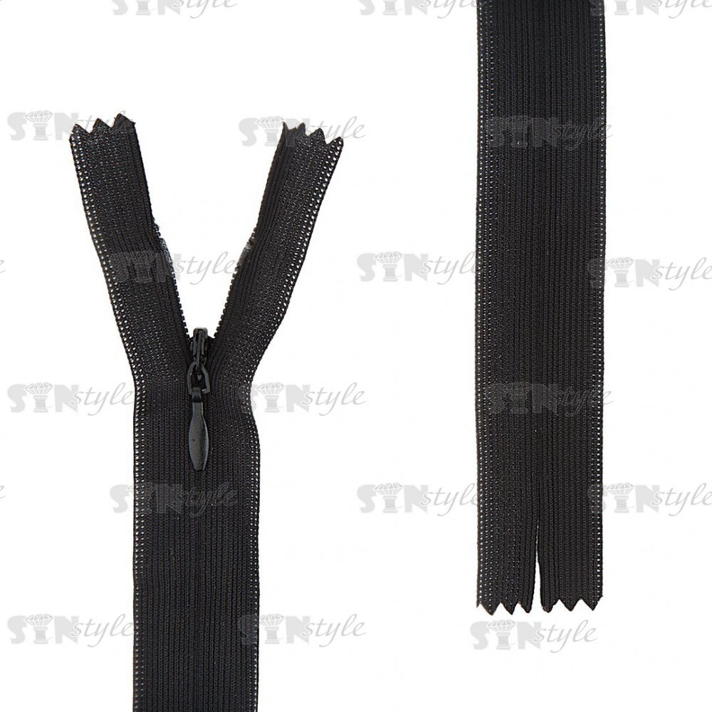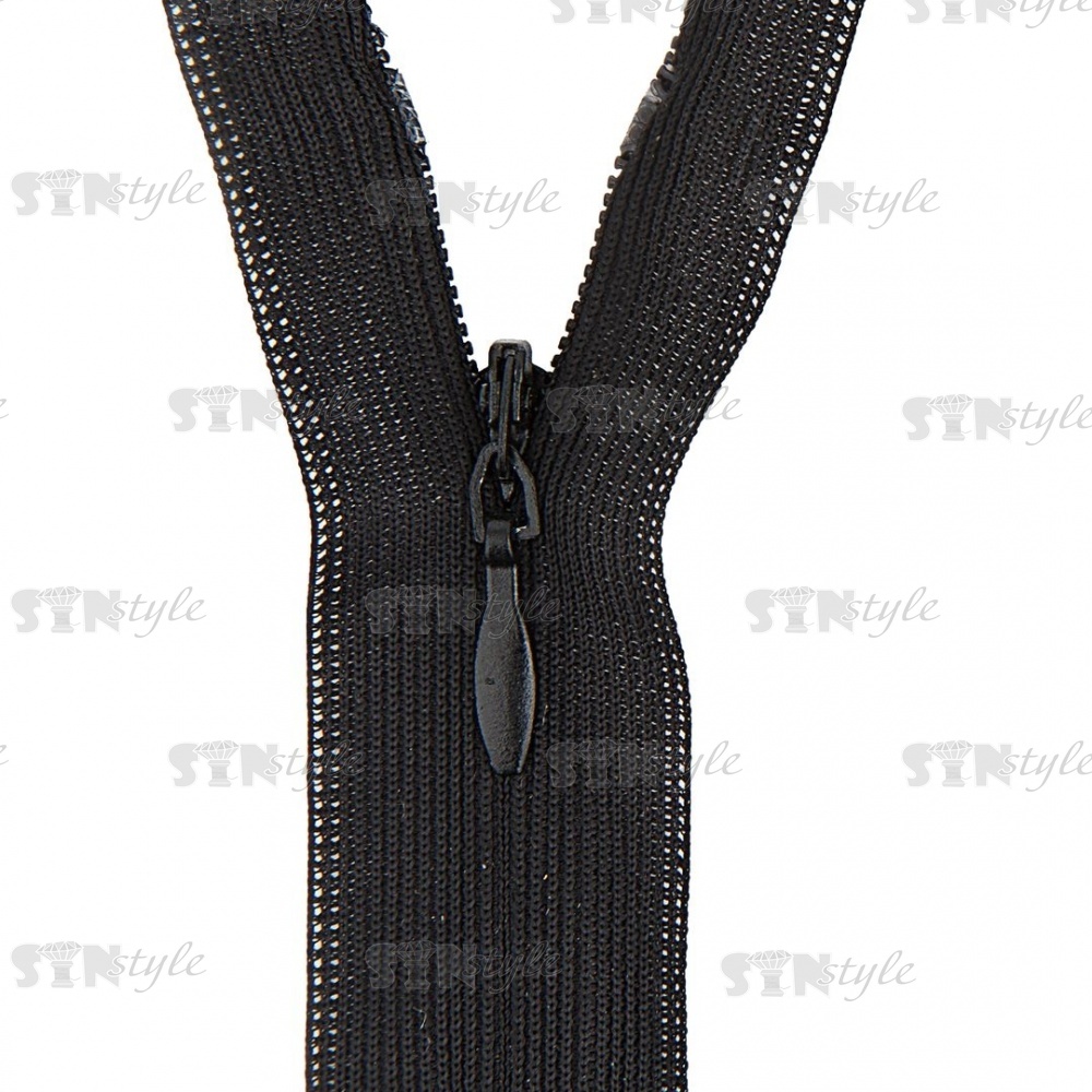 Молния спираль, тип 3, потайная, неразъемная, основа капрон, длина 50 см, цвет 322 (черный), бегунок цвета основы