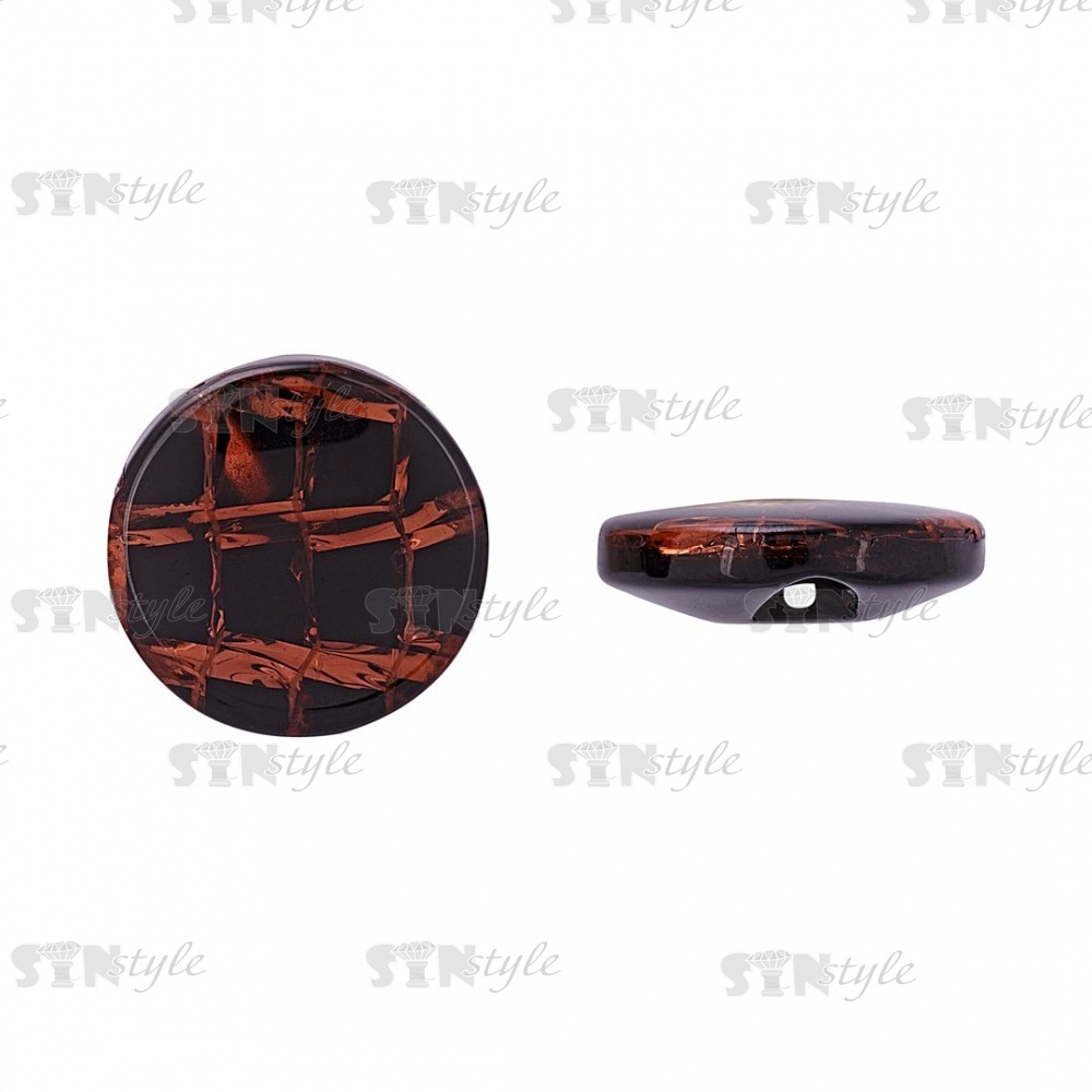 Пуговица пластиковая на полуножке, размер 24L, цвет темно-коричневый с прожилками