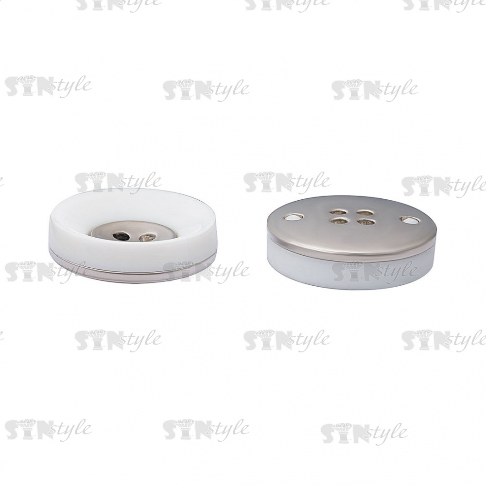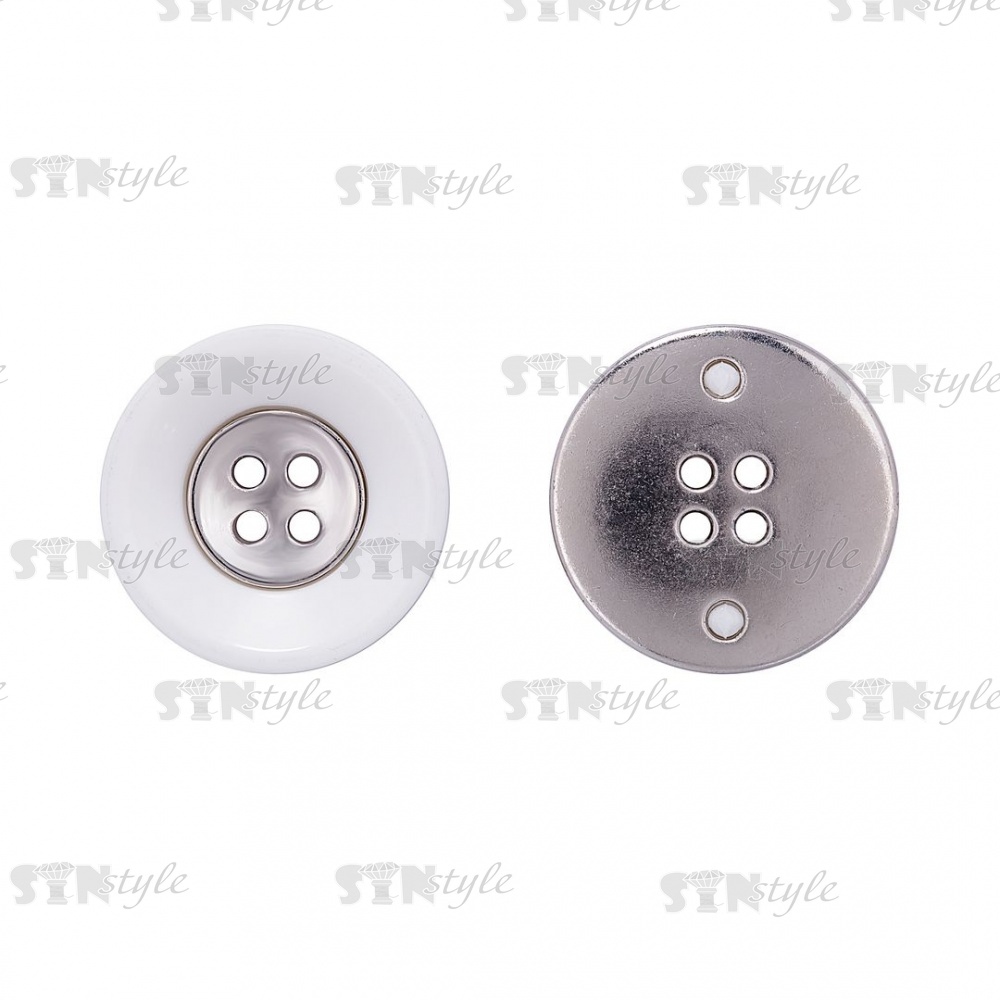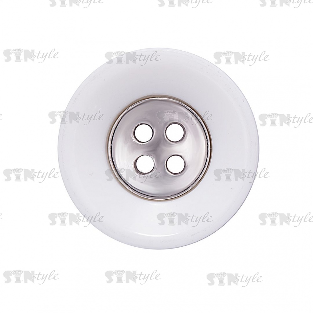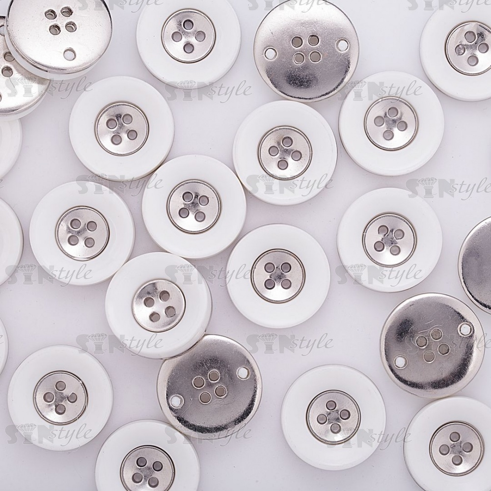 Пуговица пластиковая, на черыре прокола, белая с серебром, 40L