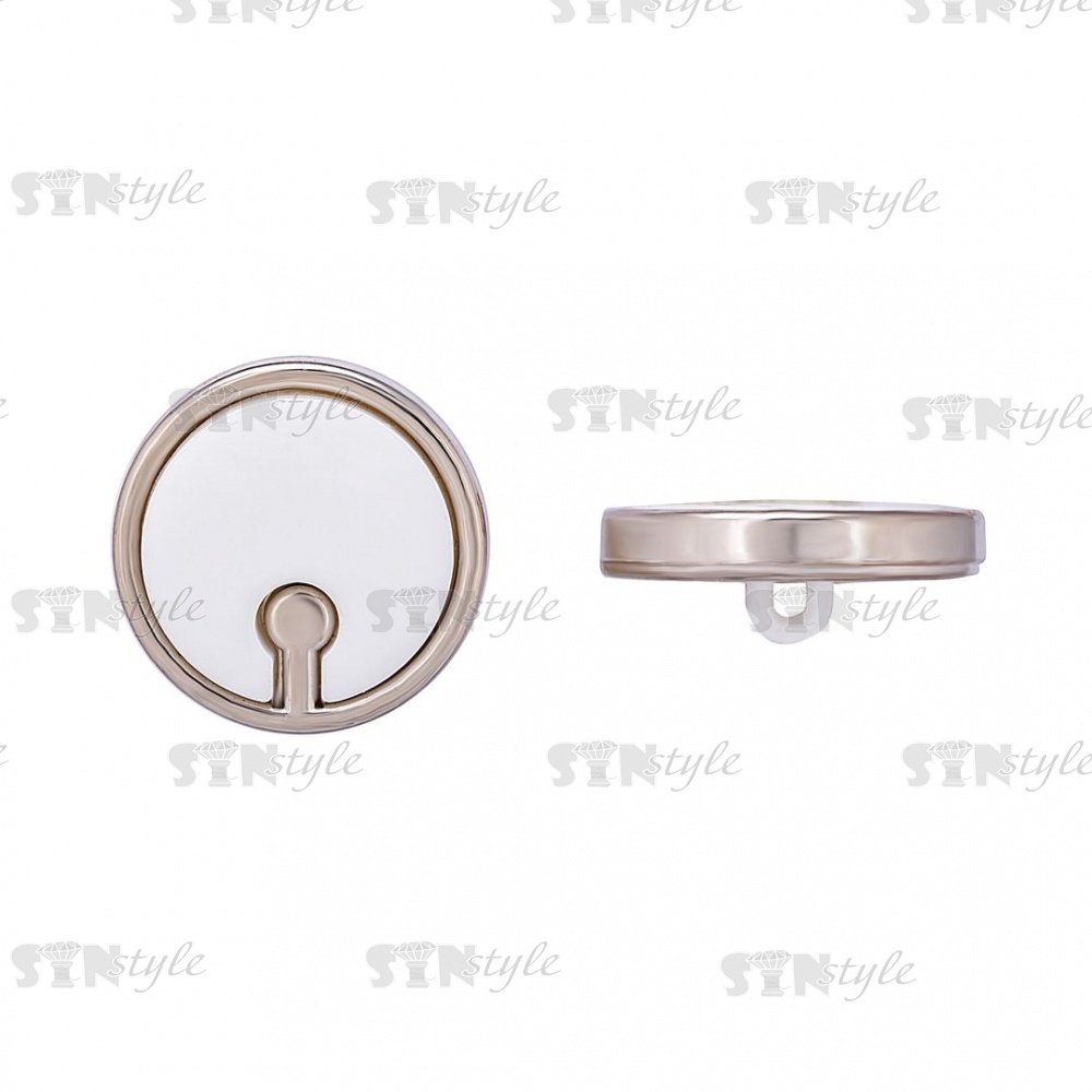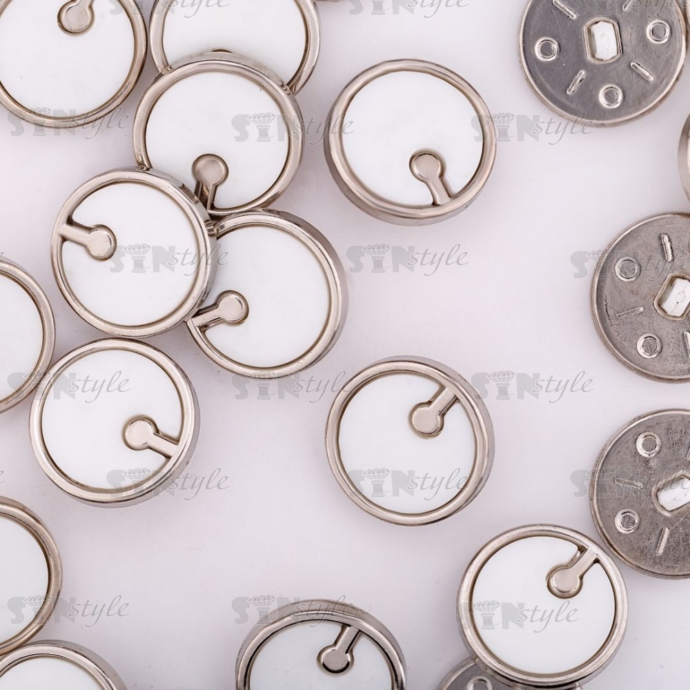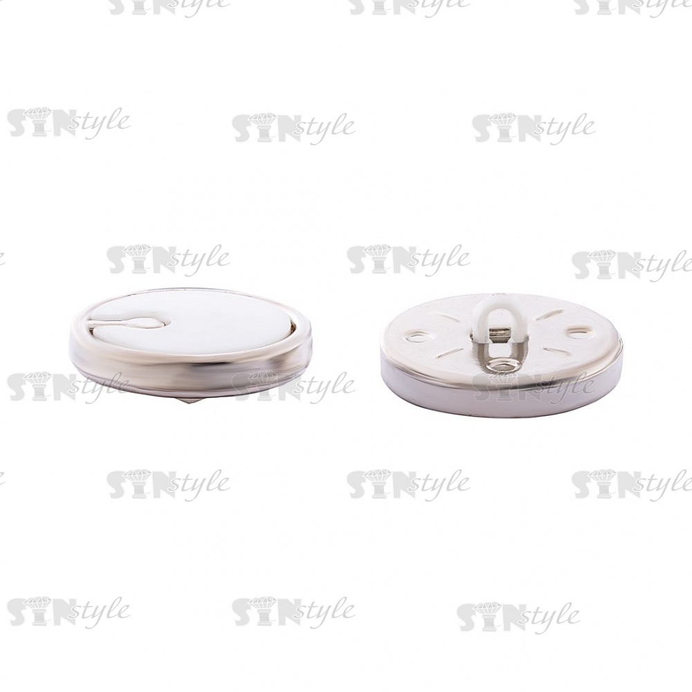 Пуговица пластиковая на ножке, размер 48L, основа цвета никель, шляпка белая