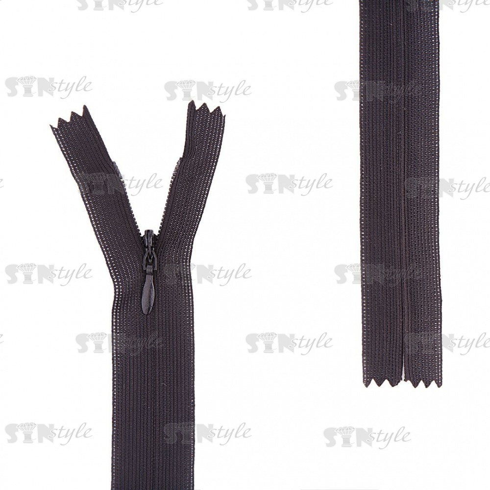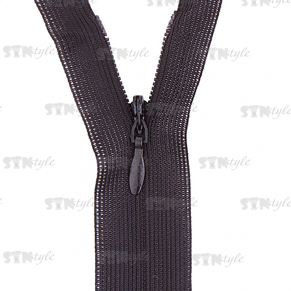 Молния спираль, тип 3, потайная, неразъемная, основа капрон, длина 20 см, цвет 322 (черный), бегунок цвета основы