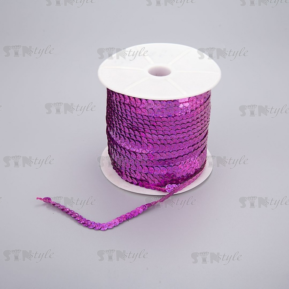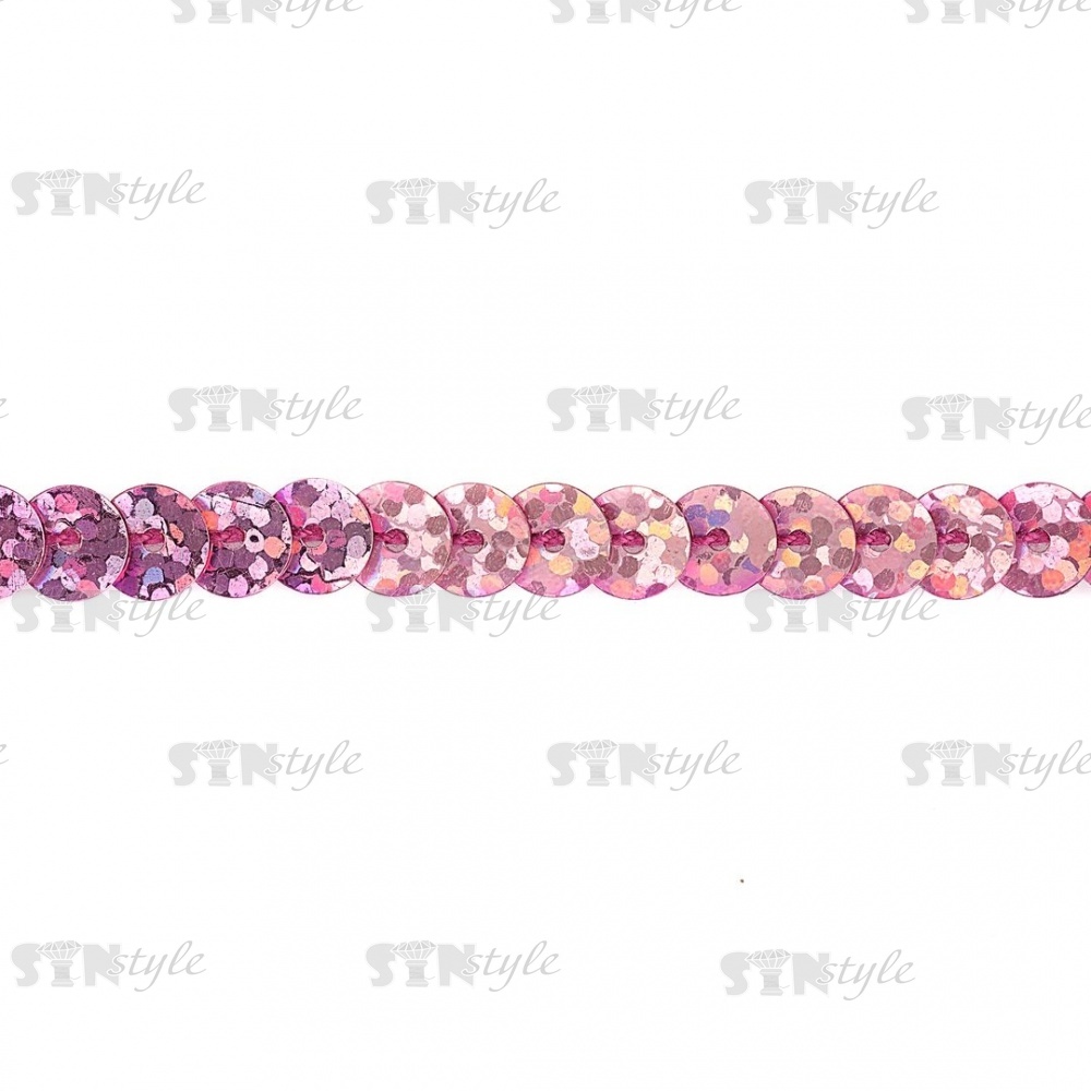 Пайетки на нитке, d=6 мм, цвет фуксия радужная, намотка 100 ярдов