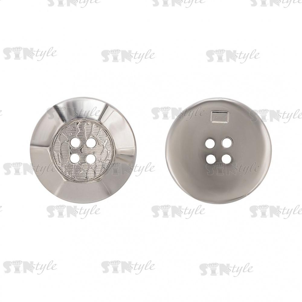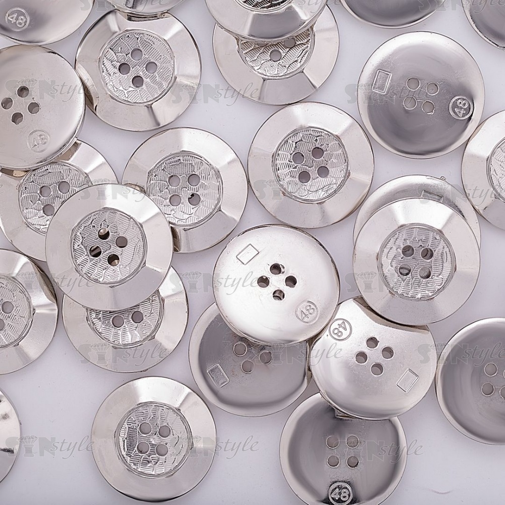 Пуговица пластиковая на четыре прокола, серебристая, 48L