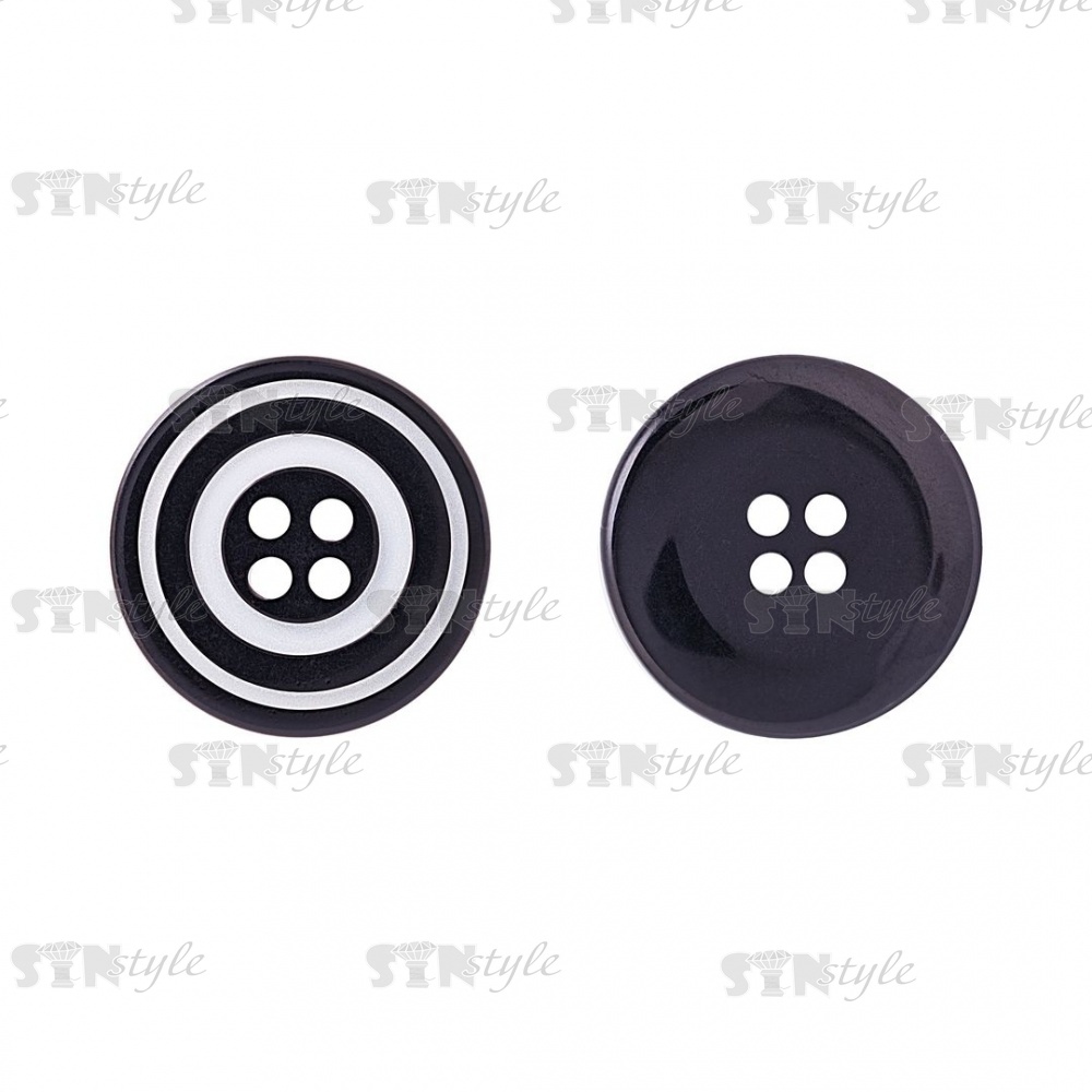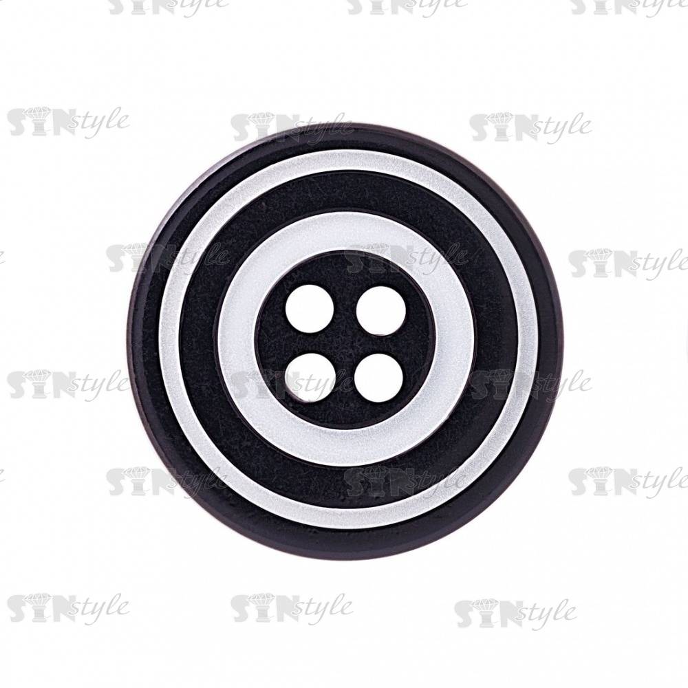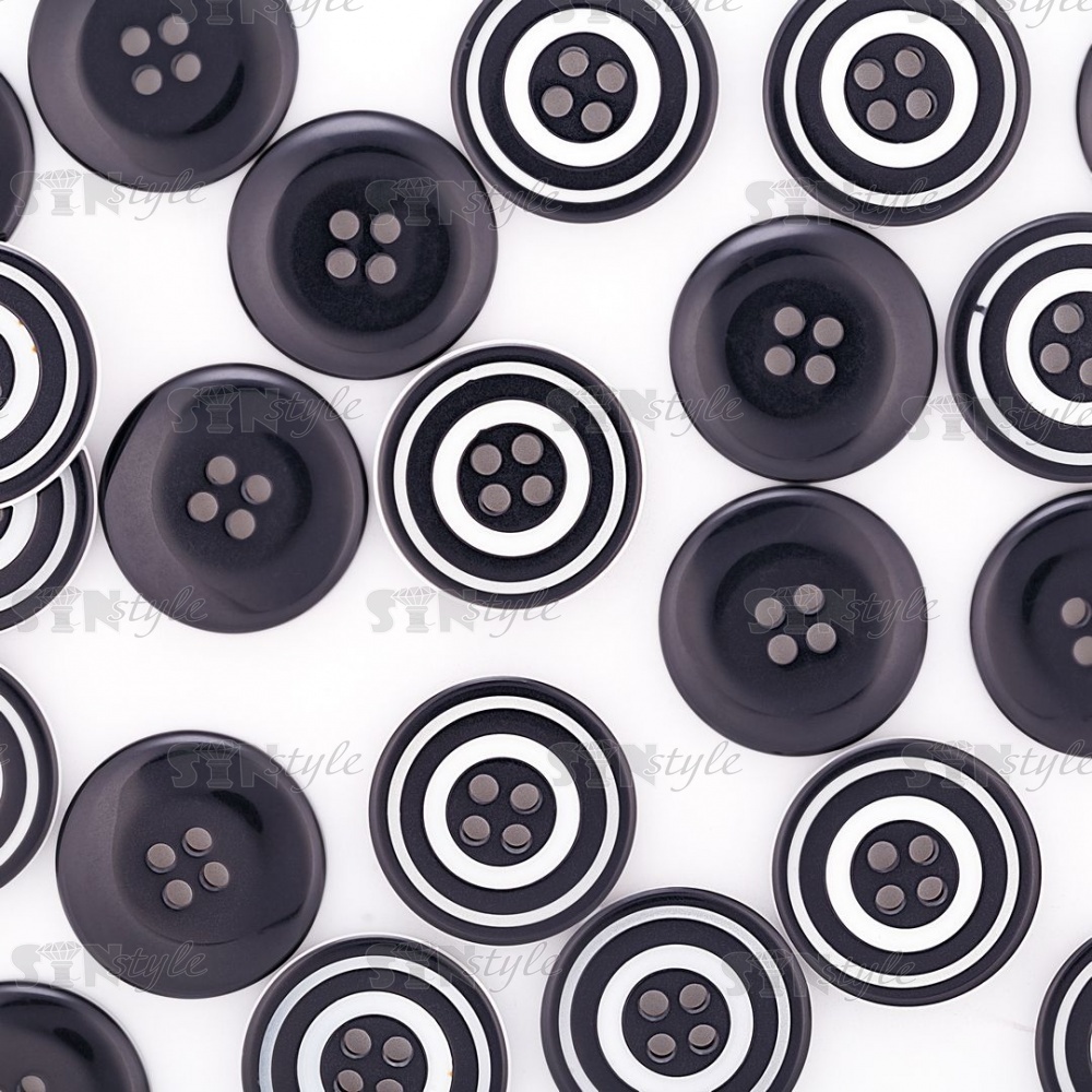 Пуговица пластиковая на четыре прокола, черная/белая, 34L