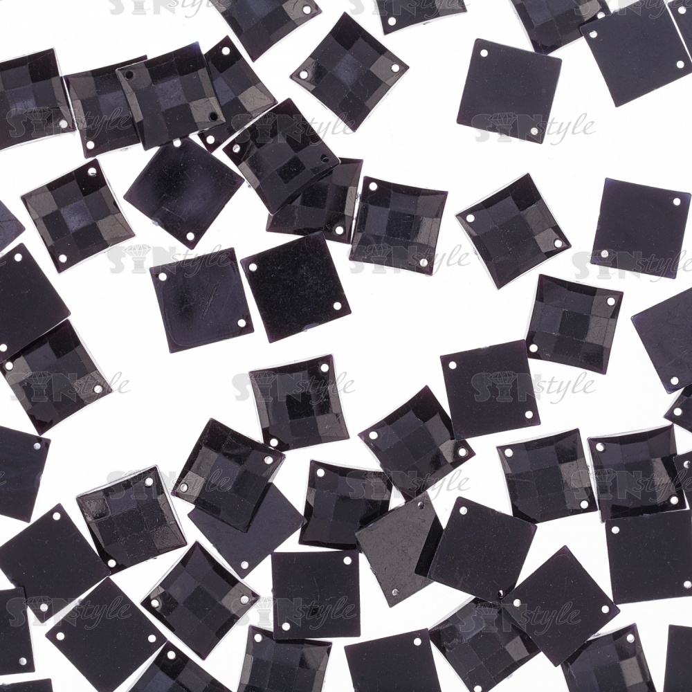 Стразы пришивные акриловые, форма квадрат, цвет черный, размер 15*15 мм