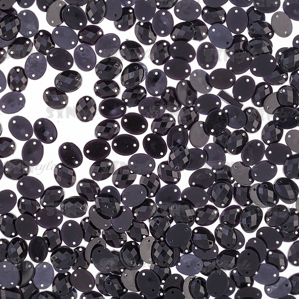 Стразы пришивные акриловые, форма овал, цвет черный, размер 9*10 мм