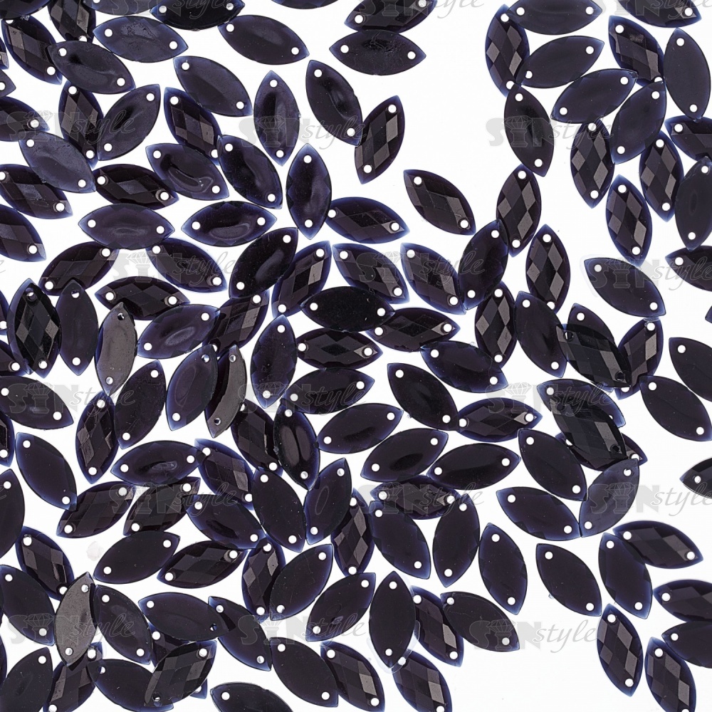 Стразы пришивные акриловые, форма лодочка, цвет черный, размер 5*12 мм