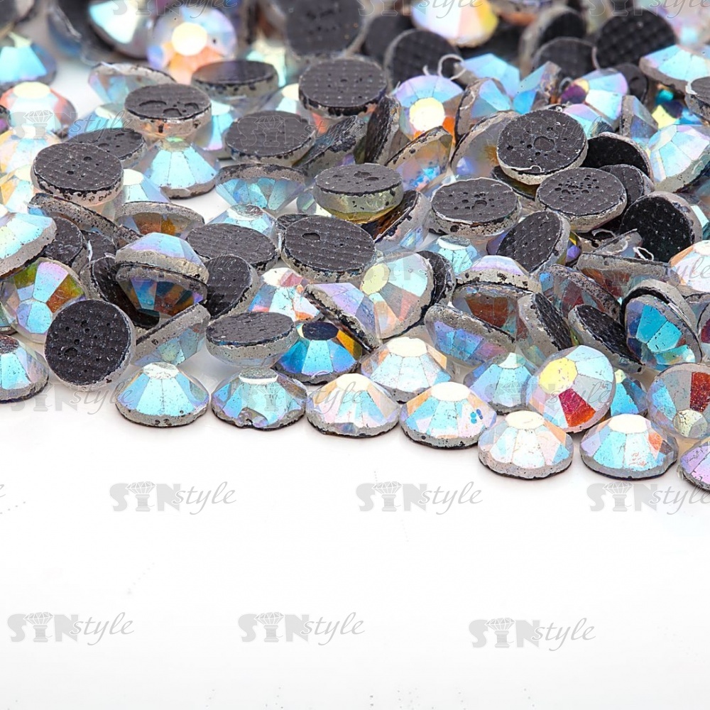 Стразы термоклеевые стеклянные SS16, форма круг, цвет радужный (голография), 1440 шт/уп