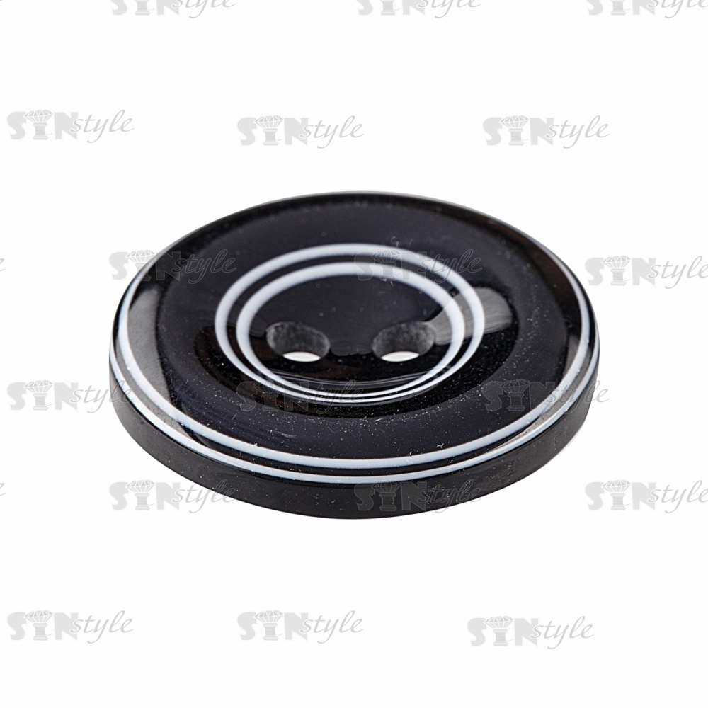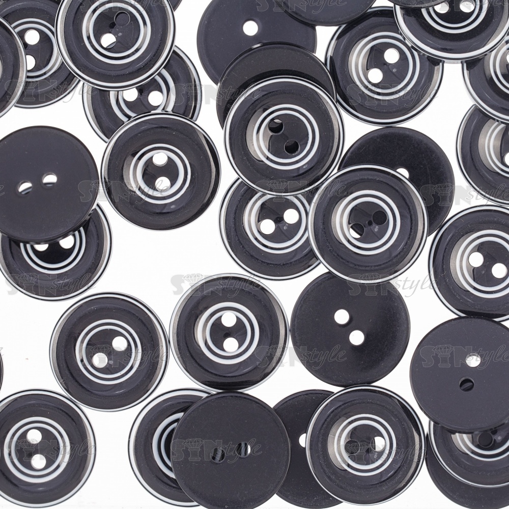 Пуговица пластиковая на два прокола, размер 40L, цвет черный/белый