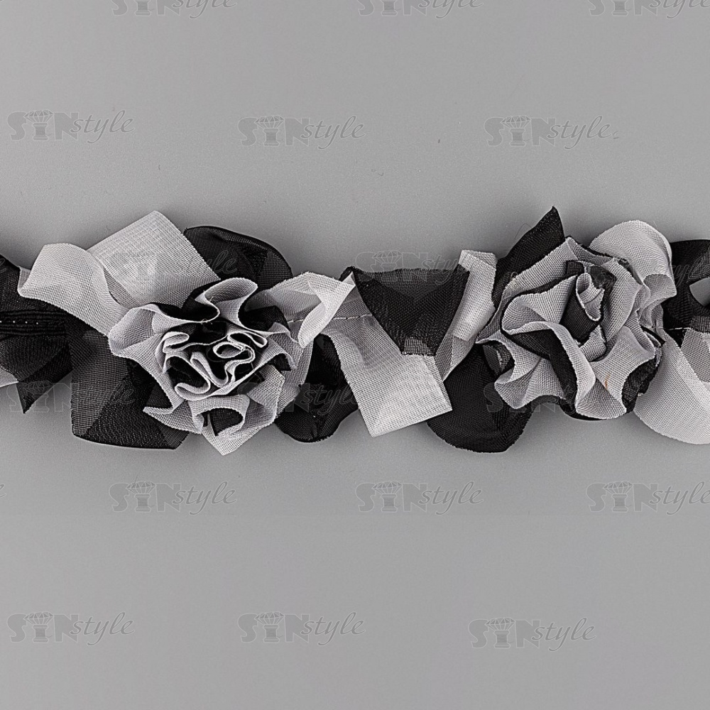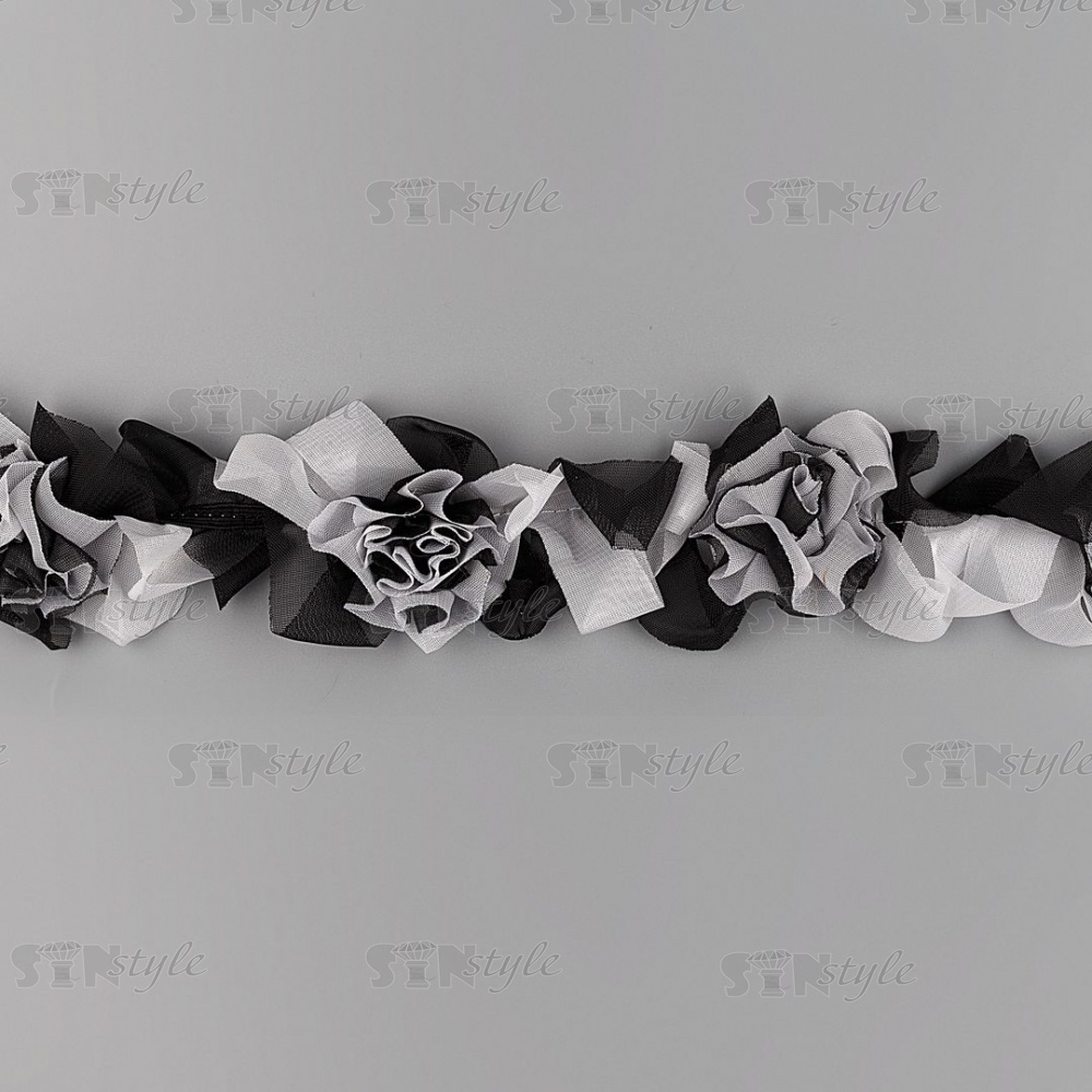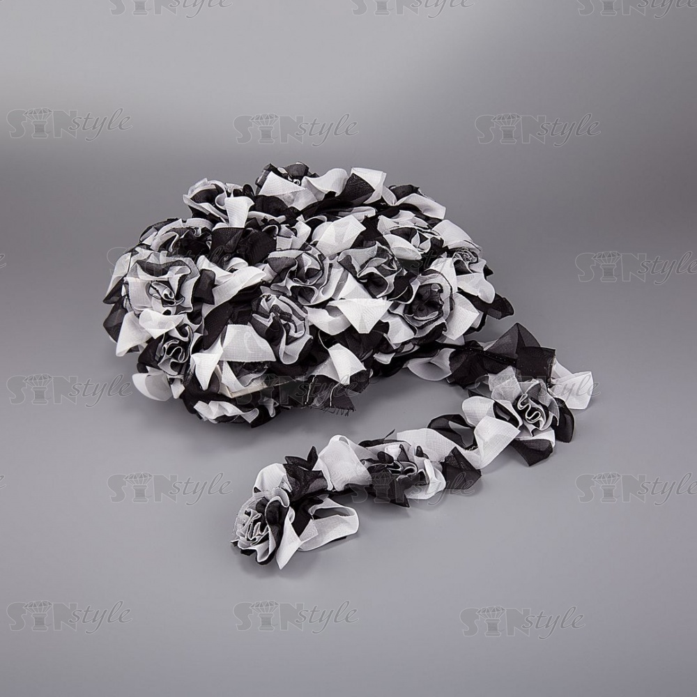 Кружево из капроновой ленты на резинке, ширина 45 мм, цвет черный+белый (19), намотка 10 ярдов