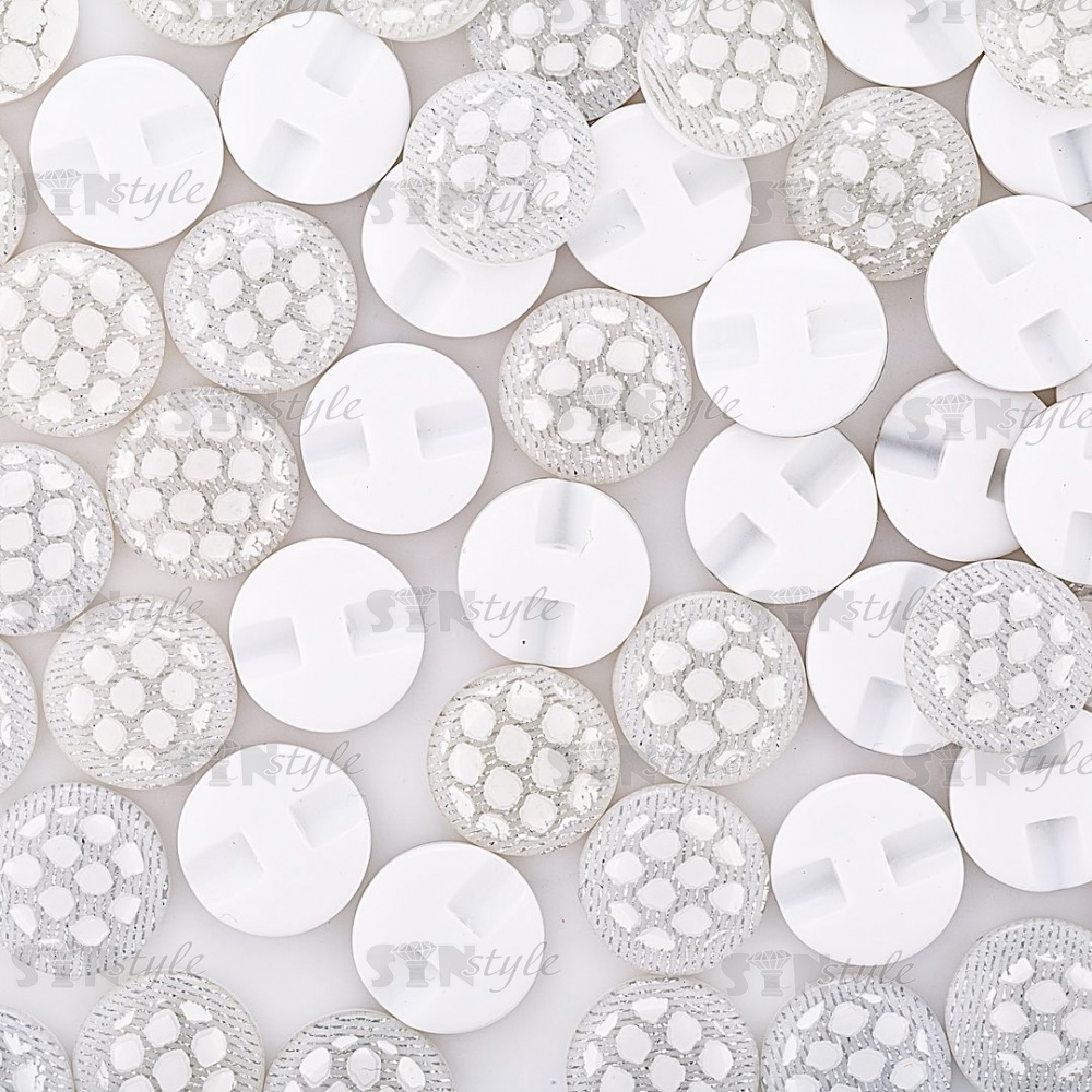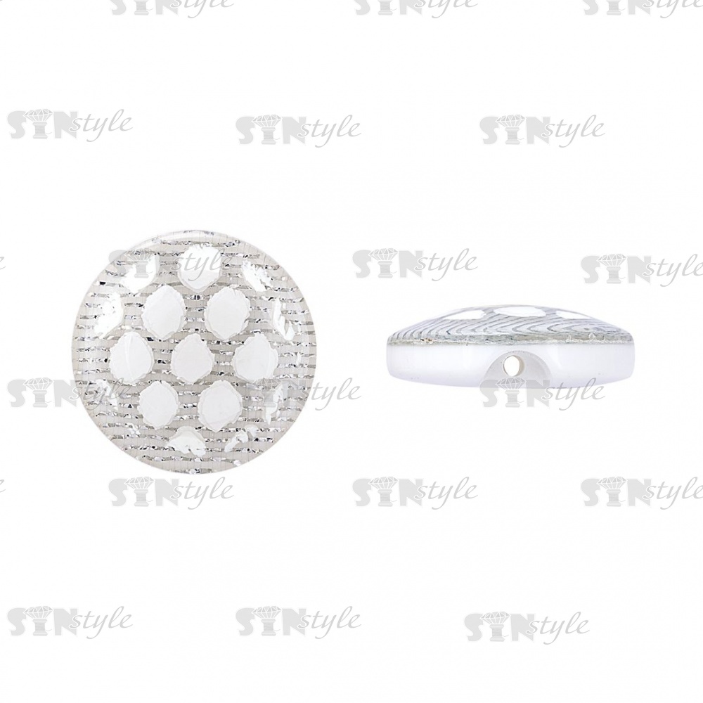 Пуговица пластиковая на полуножке, размер 24L, белая с блестками