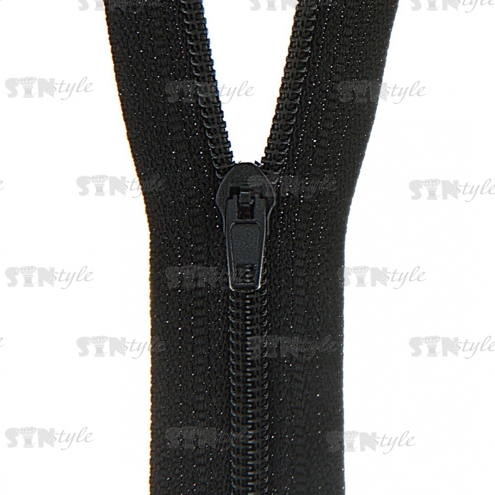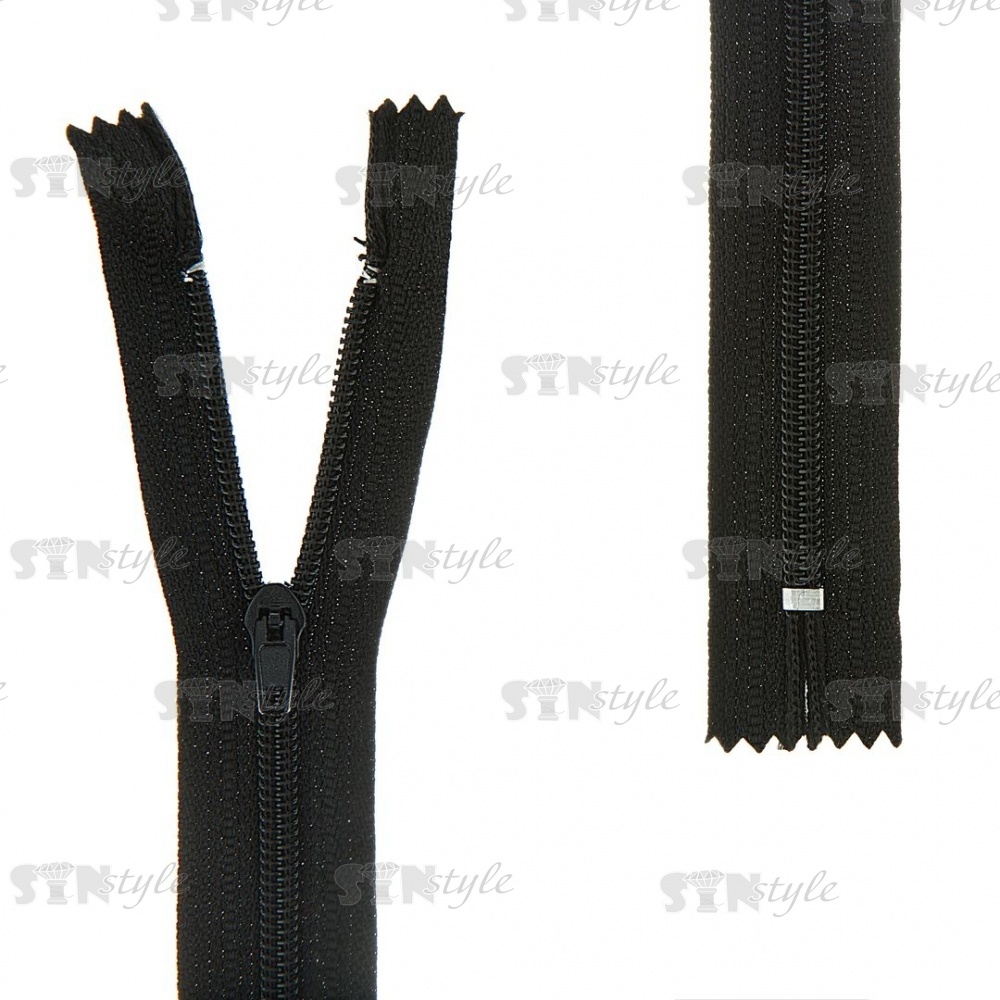 Молния спираль, тип 4, неразъемная, основа нейлон, длина 20 см, цвет 322 (черный), замок-автомат