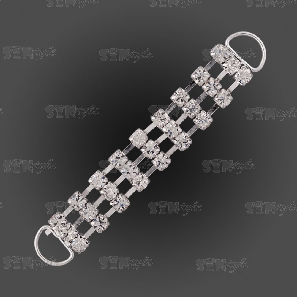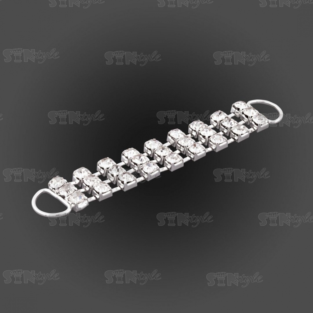 Декоративное украшение со стразами пришивное, цвет никель+белые стразы, размер 80х12 мм