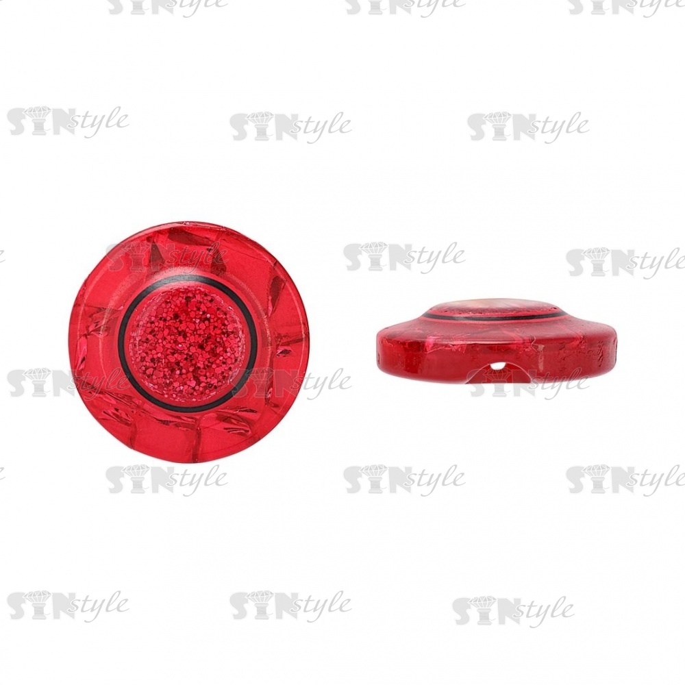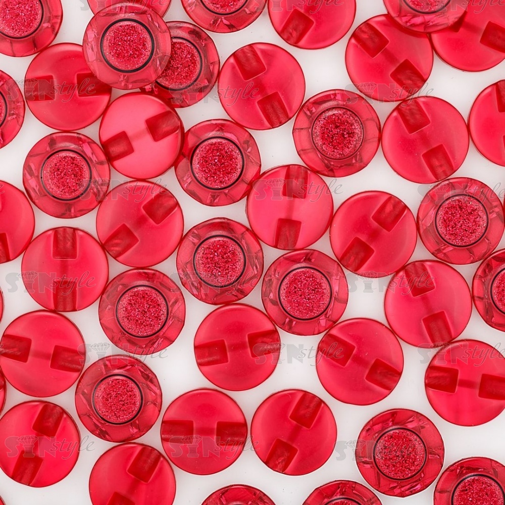 Пуговица пластиковая на полуножке, размер 24L, цвет красный с блестками