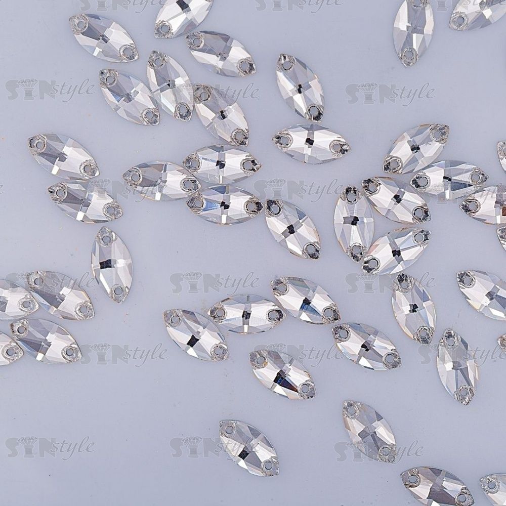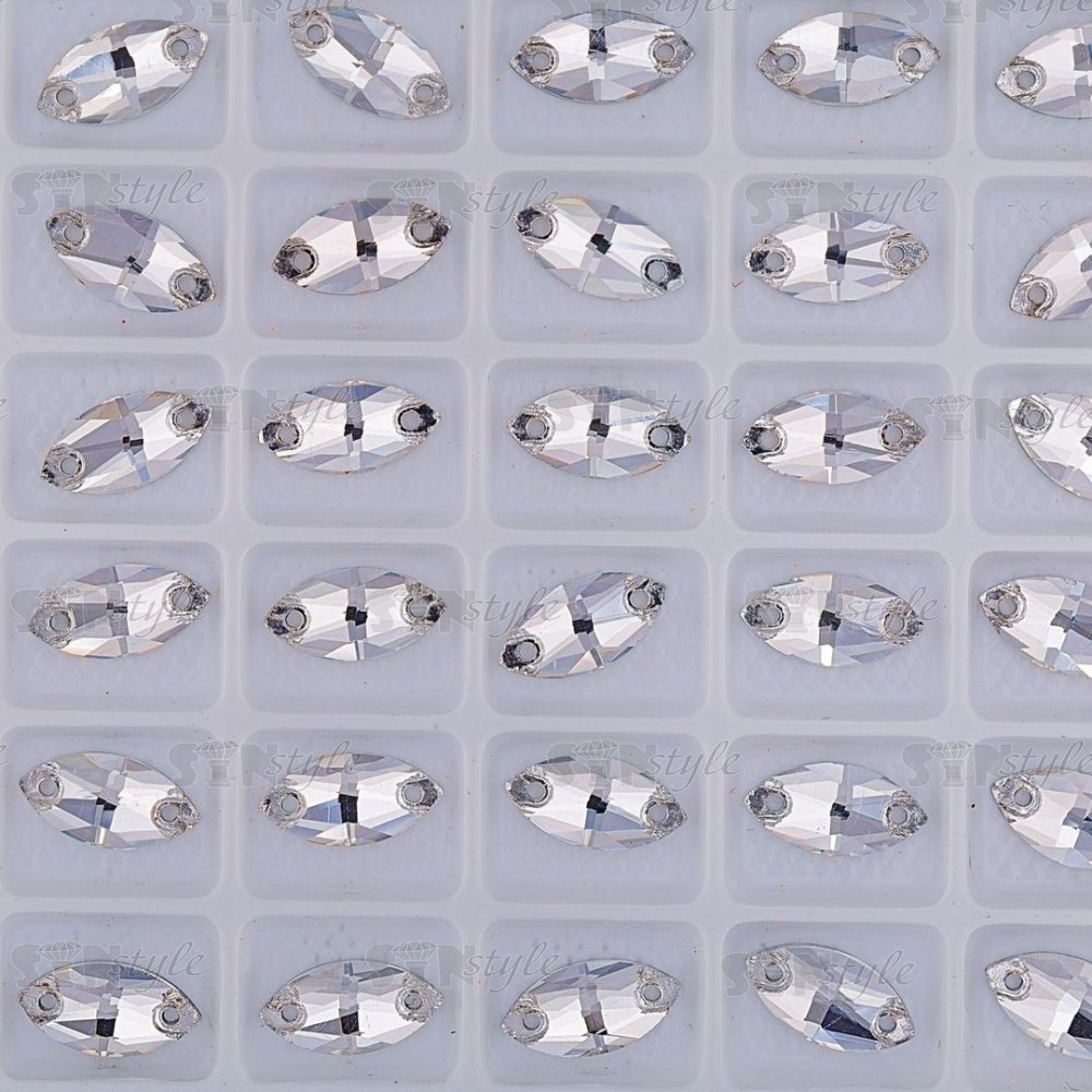 Стразы пришивные стеклянные, форма лодочка, цвет белый прозрачный, размер 13*7 мм