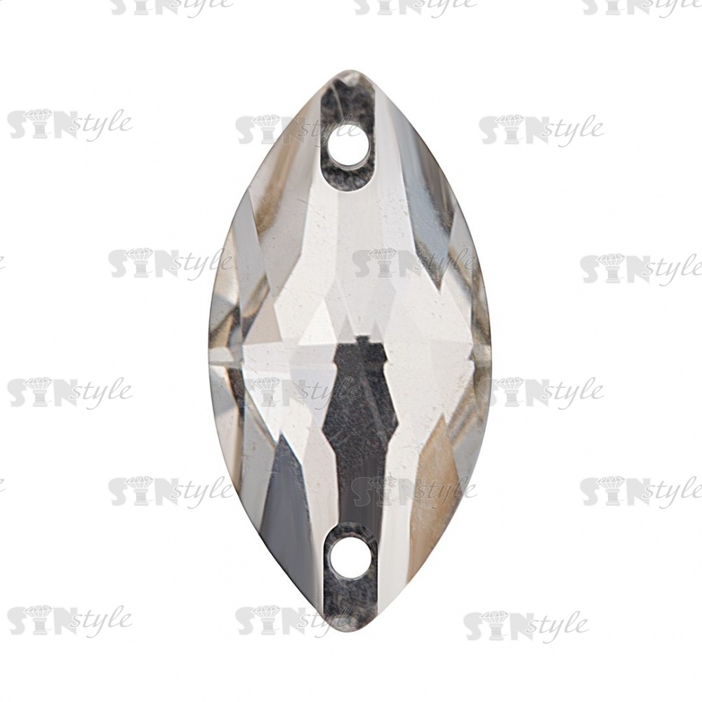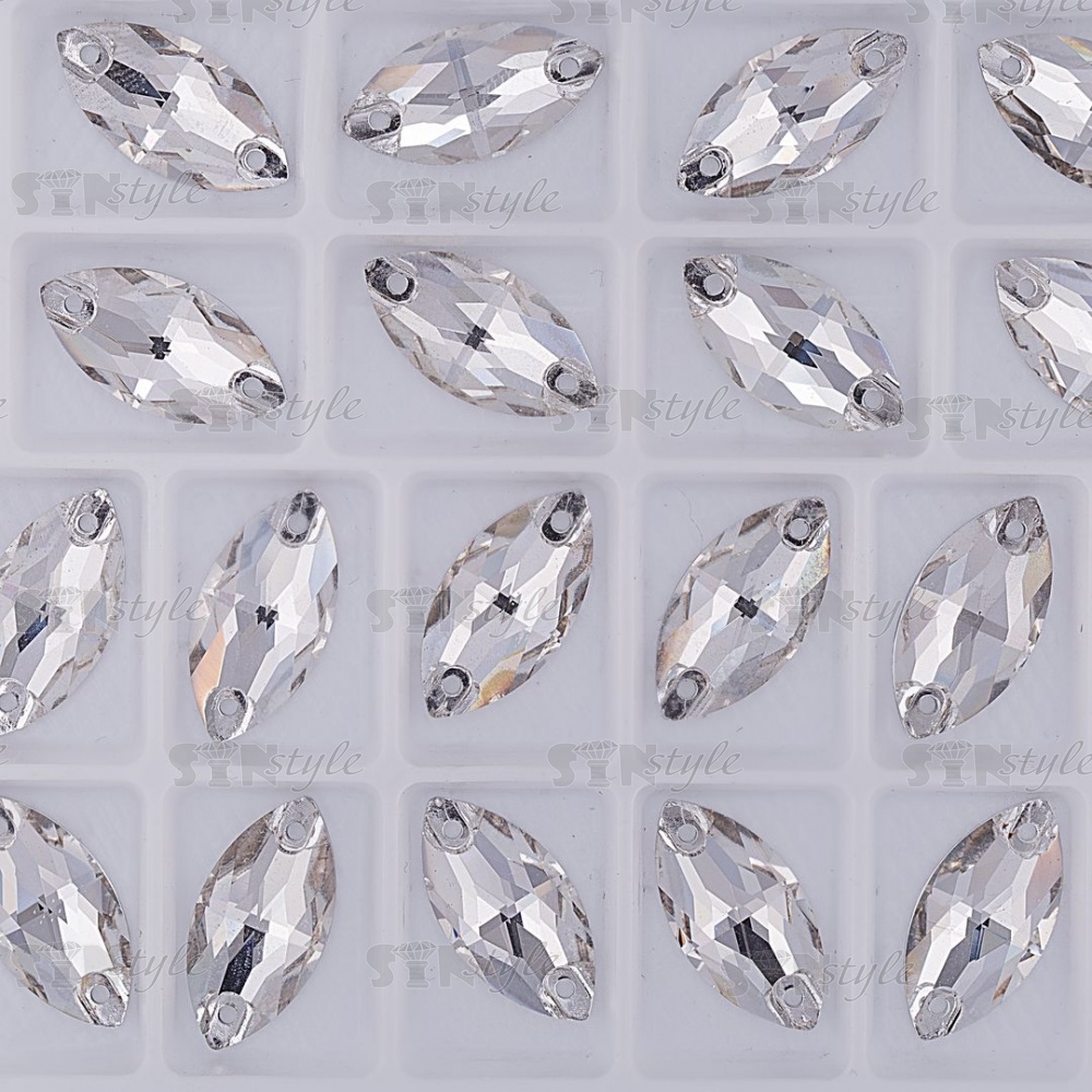 Стразы пришивные стеклянные, форма лодочка, цвет белый прозрачный, размер 10*19 мм