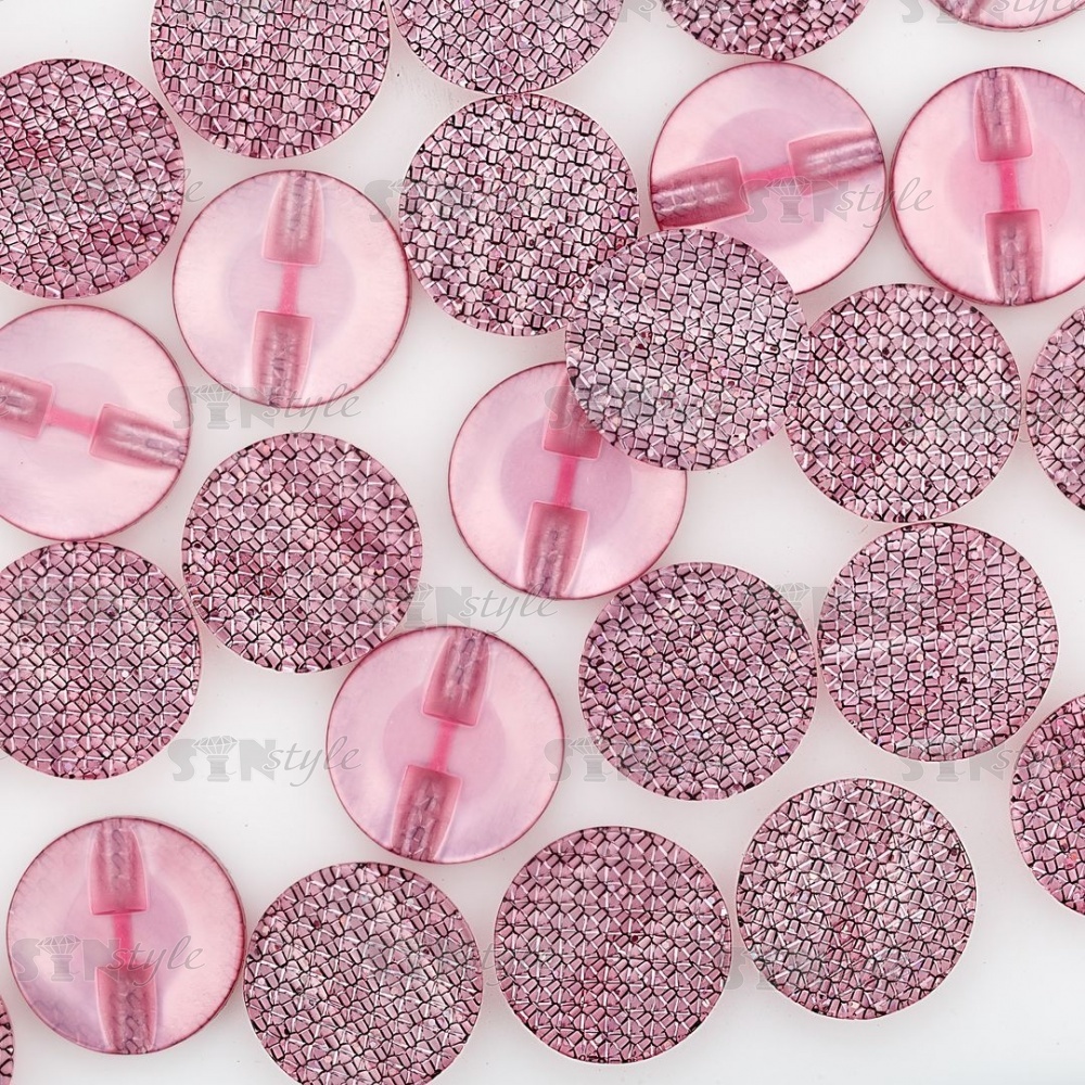 Пуговица пластиковая на полуножке, размер 34L, круглой формы, шляпка волнистая, цвет розовый с блестками