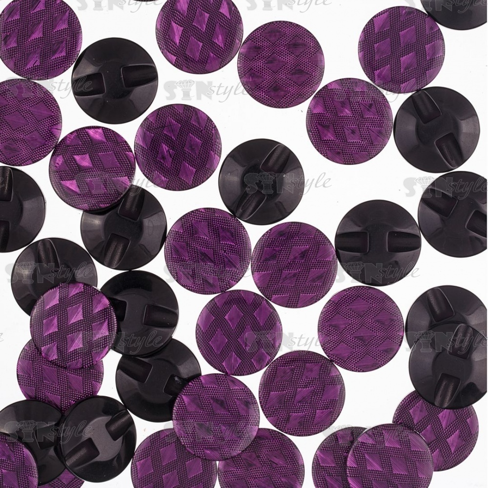 Пуговица пластиковая на полуножке, размер 34L, форма круглая, рисунок "ромб", цвет фиолетовый